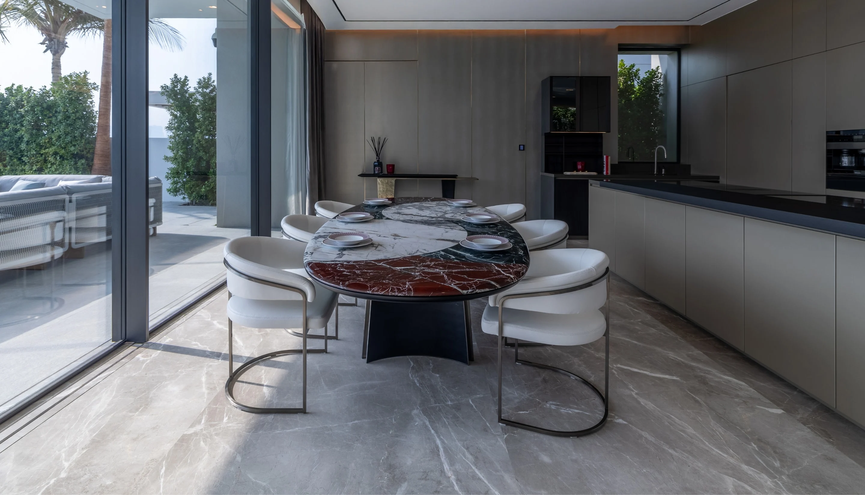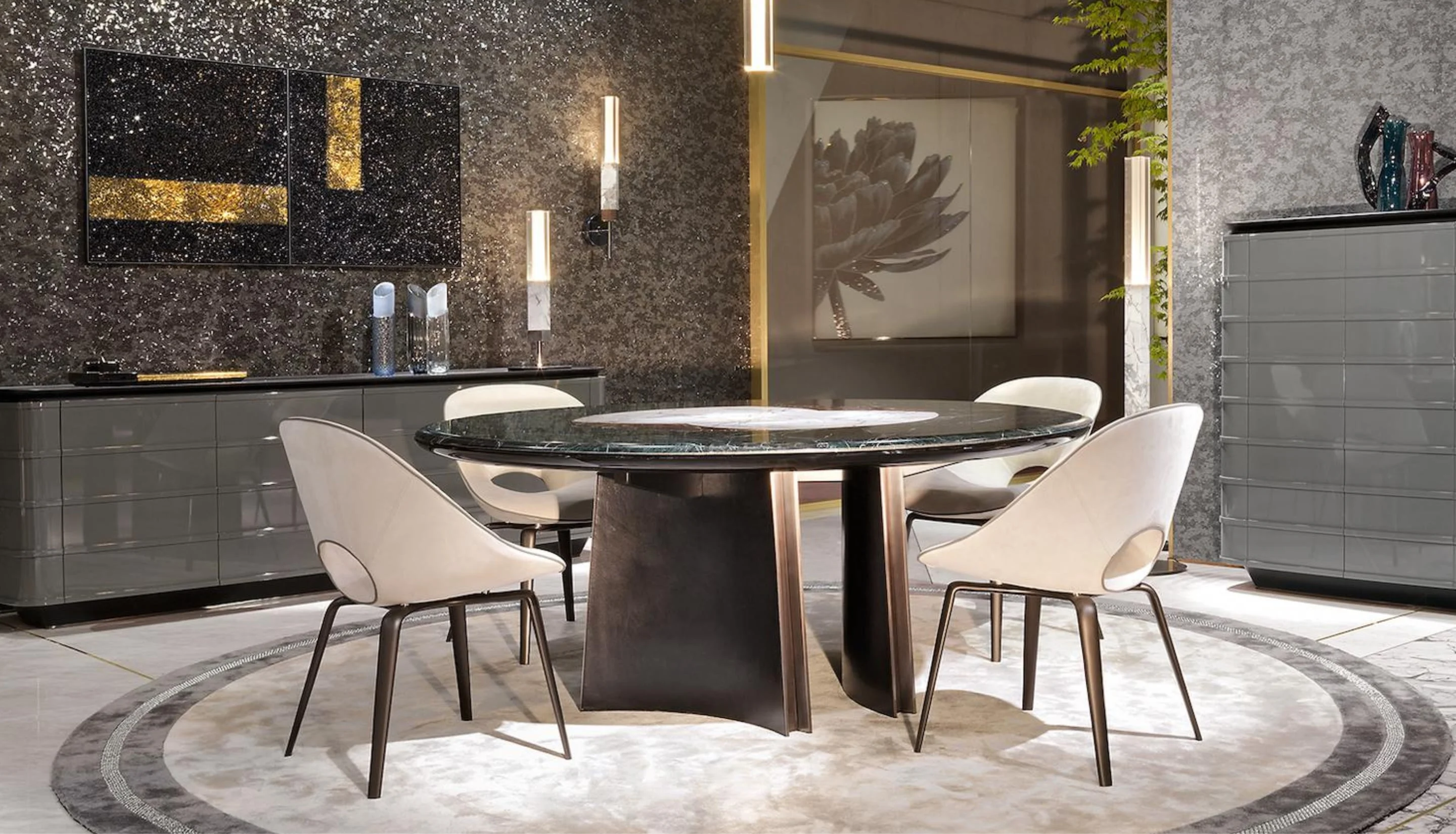 Обеденный стол Jason органично вписывается в интерьеры класса contemporary luxury, art déco и modern classic, задавая тон всей обеденной зоне.
