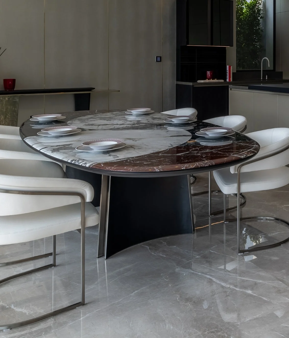 Обеденный стол Jason от Visionnaire Home — это произведение, где материал становится искусством, а дизайн — выражением совершенства. Его гармоничные линии, богатая текстура мрамора и фирменная детализация Visionnaire воплощают высший уровень итальянской эстетики, превращая трапезу в ритуал, наполненный стилем, светом и утончённым великолепием.