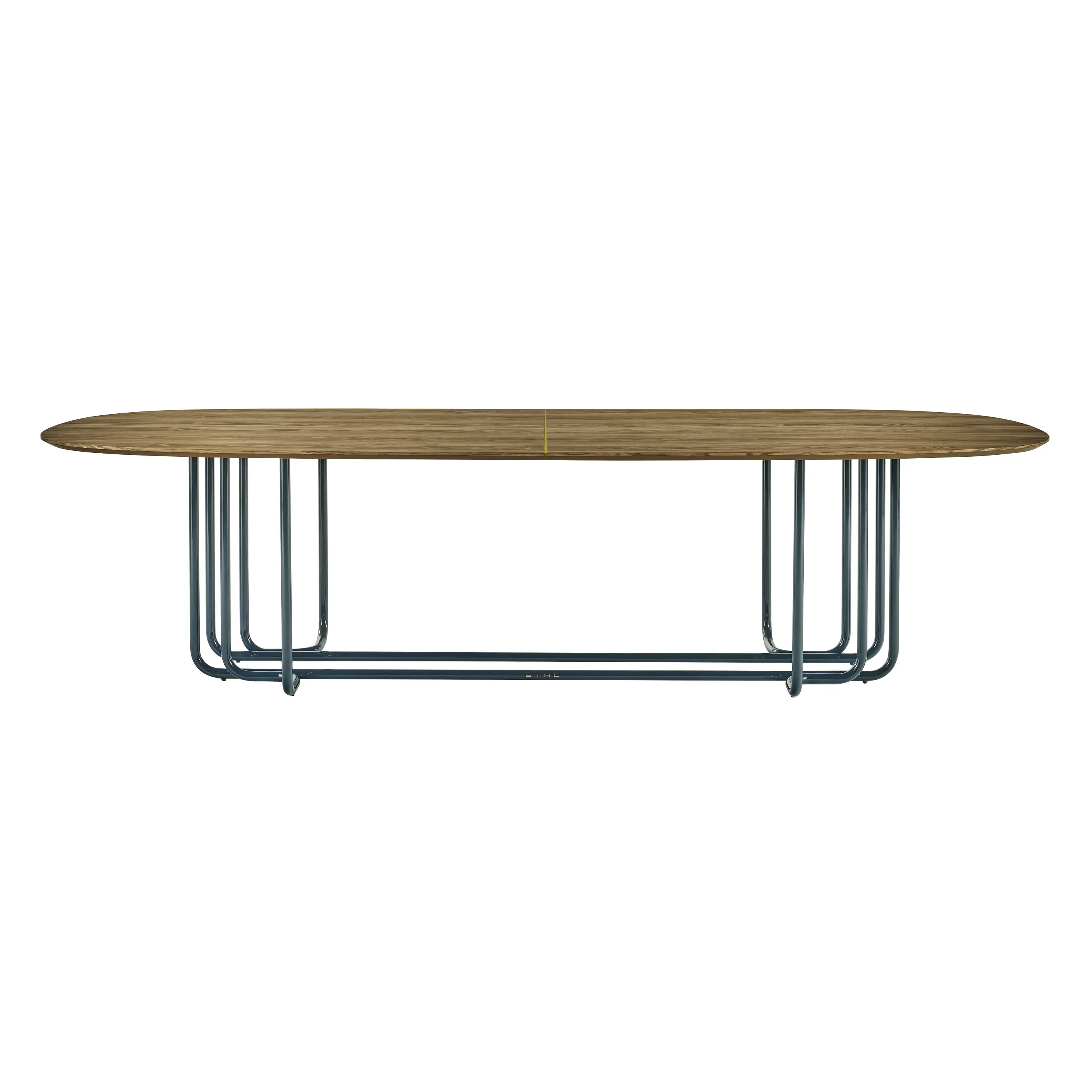 Обеденный стол Piping от ETRO Home Interiors — это элегантный центр столовой зоны, в котором оживает дух культовых 1970-х. Его выразительный силуэт соединяет в себе пластичность металлической основы и тактильное богатство деревянной столешницы. Сочетание блеска лакированного металла, благородного ореха и акцентных деталей превращает модель в скульптурный объект, способный задать тон всему интерьеру.