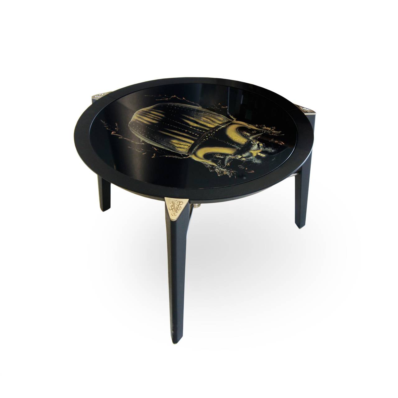 Стол Ø60 см: Черный жук и золотая фольга, Бабочка и серебряная фольга, Змея 3 и серебряная фольга.