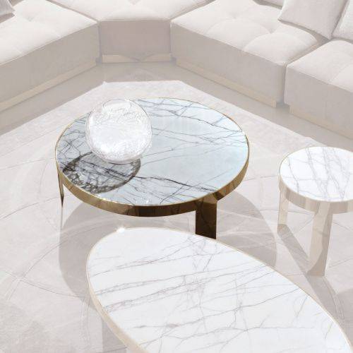 Металлический круглый коктейльный столик с рамой из нержавеющей стали светло-золотого цвета, декорированной логотипом Giorgio Сollection. Столешница из мрамора (на выбор): Black Marquinia, White Carrara, Beige Emperador, Dark Emperador, Calacatta Vagli, Indian Calacatta, Madagascar Black & Gold, Hymalaya Onyx, Bolivian Green.