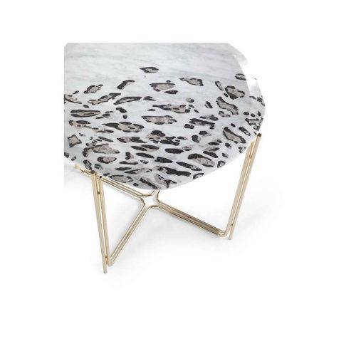 Верх стола только в дополнительном мраморе Carrara C с отделкой «scagliola». Приставной столик с металлическим основанием в золотой отделке. Логотип RC изготовлен из литой латуни с отделкой из платины или золота.