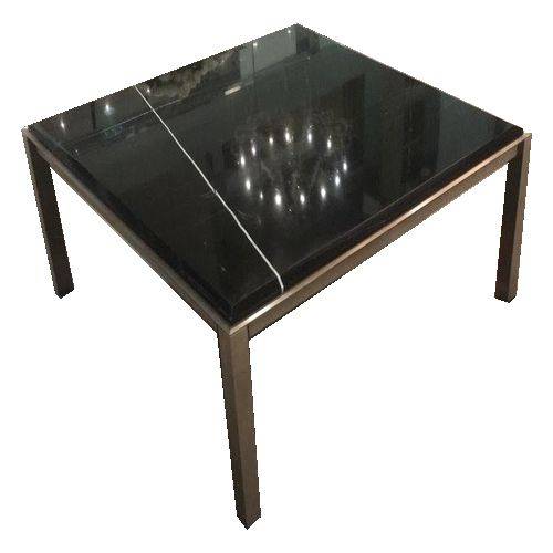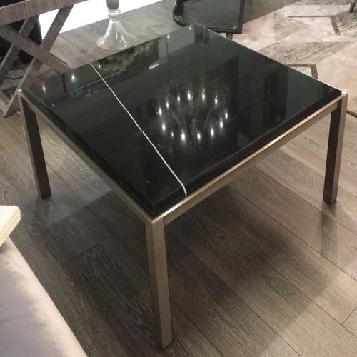 Структура из массива дерева, снаружи ножки могут быть обтянуты кожей или облицованы шпоном, внутри – сатинированной сталью. Подрамная часть обита кожей или облицована шпоном, столешница из мрамора, периметральный профиль – из сатинированной нержавеющей стали. Доступны отделки на выбор.