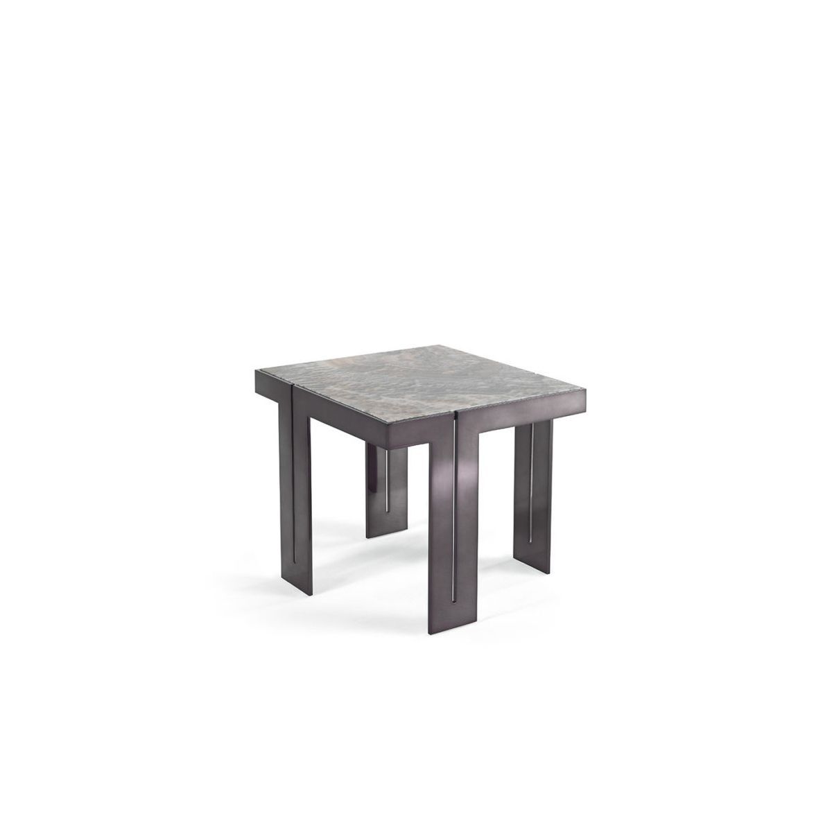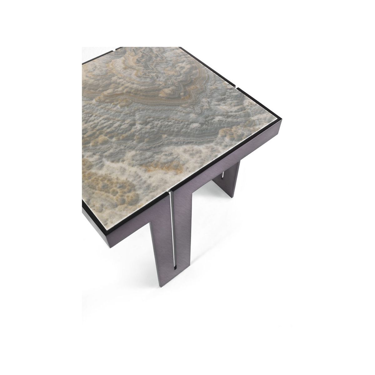Приставной столик. Структура из металла с отделкой из черного хрома и верхом из оникса Grey Cloudy.