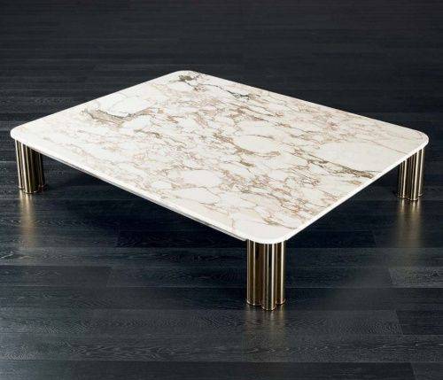 Журнальный столик. Топ из мрамора CALACATTA ORO. Ножки из стали в цвете блестящее золото.