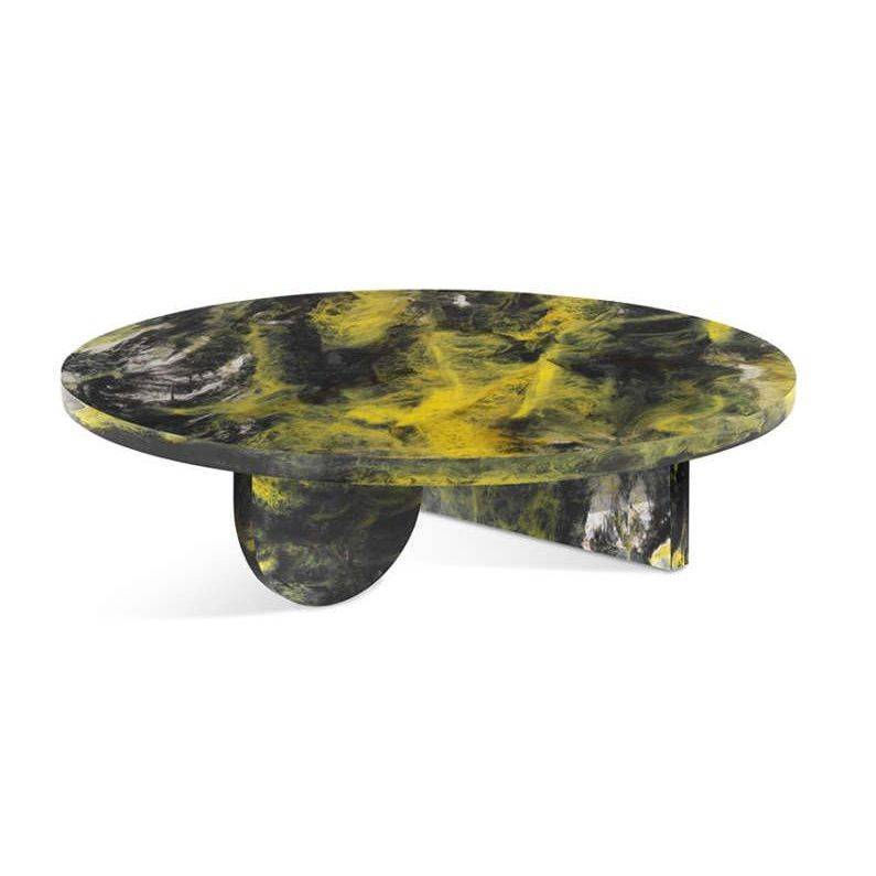 Стол выполнен из метакрилата ручной работы для литья с цветными пигментами, которые составляют характерную и уникальную художественную отделку.