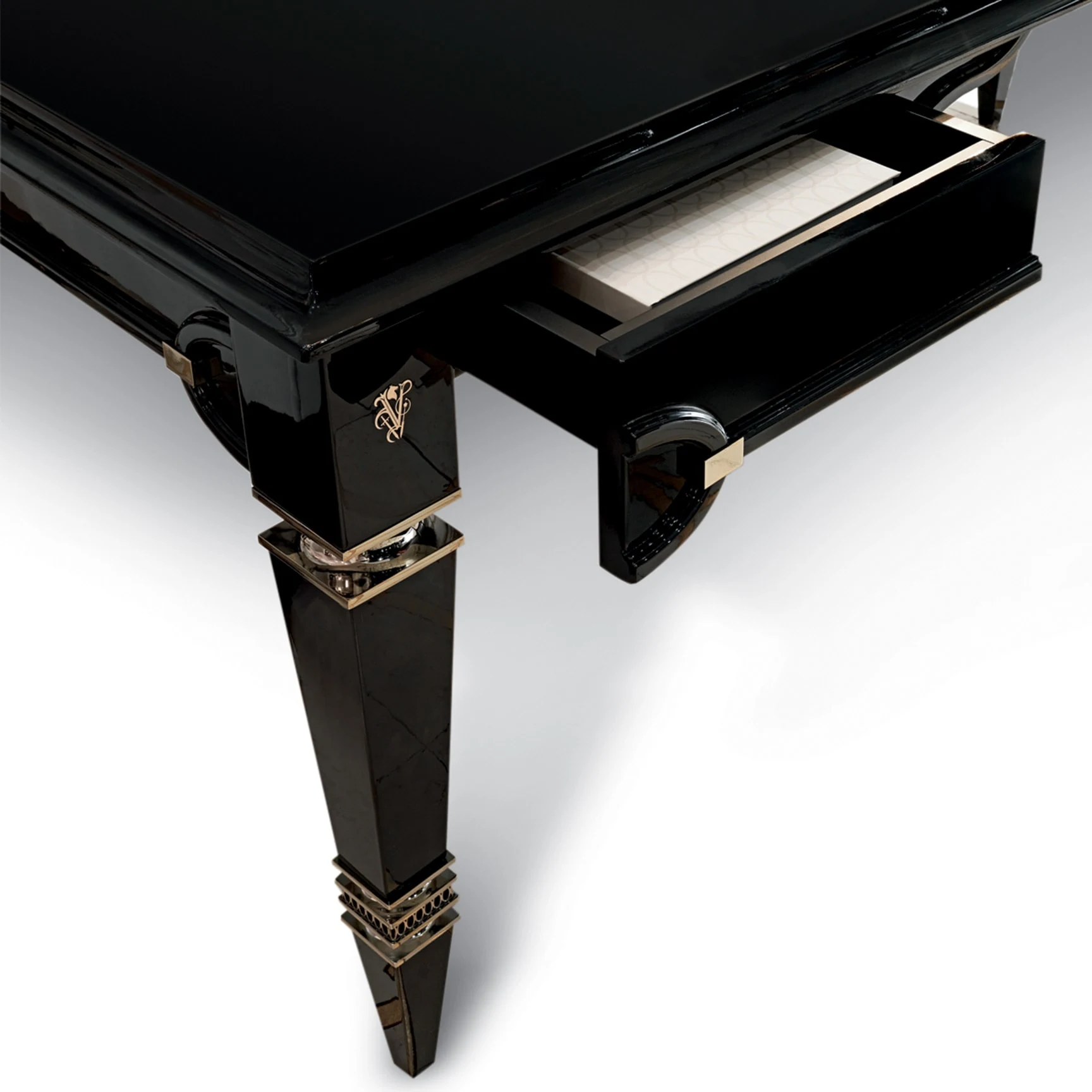 Два выдвижных ящика с системой soft-close незаметно встроены в конструкцию, сохраняя чистоту линий и лаконичность силуэта. Каждая деталь — от благородных покрытий до утончённых металлических акцентов — свидетельствует о высочайшем уровне мастерства и внимании к деталям, воплощая философию Visionnaire: роскошь как совершенство формы, фактуры и исполнения.