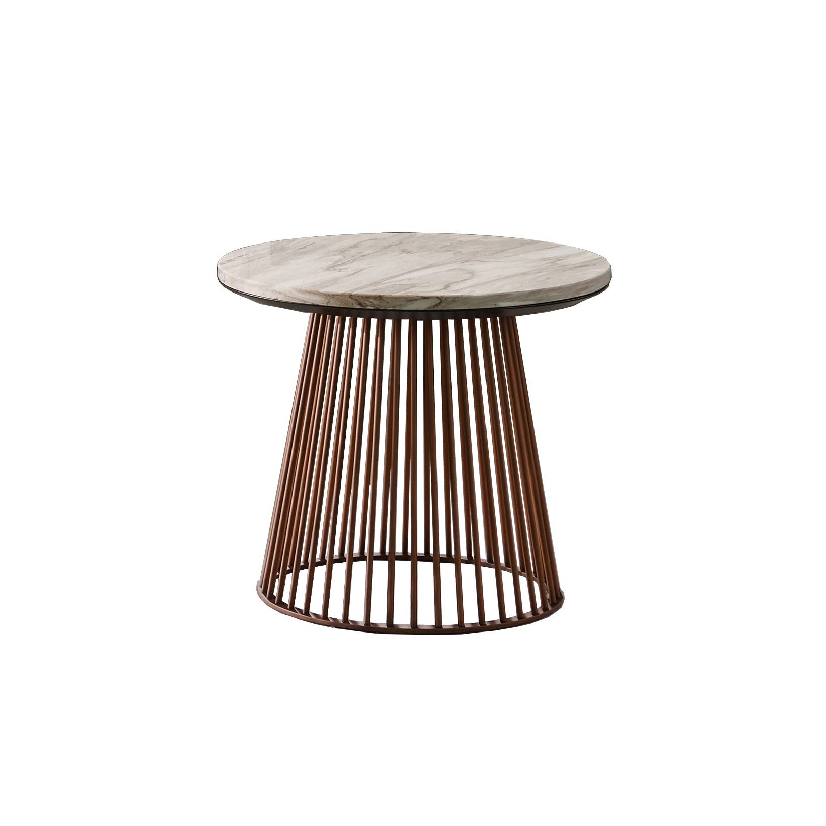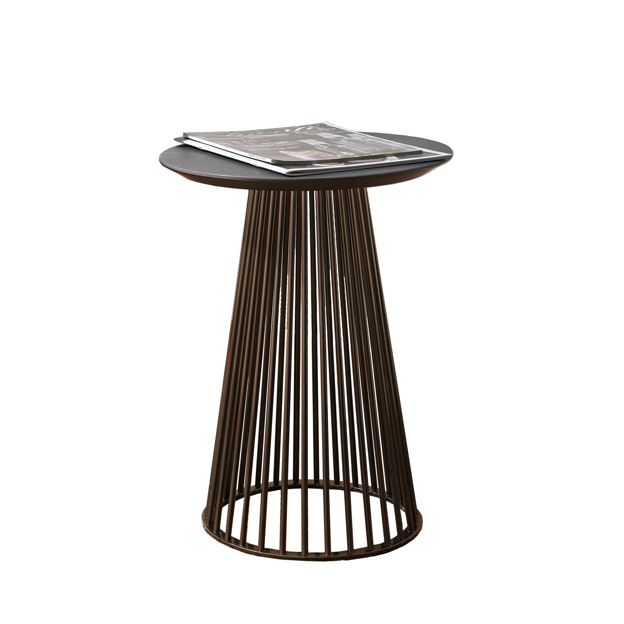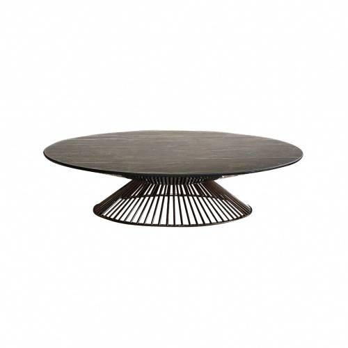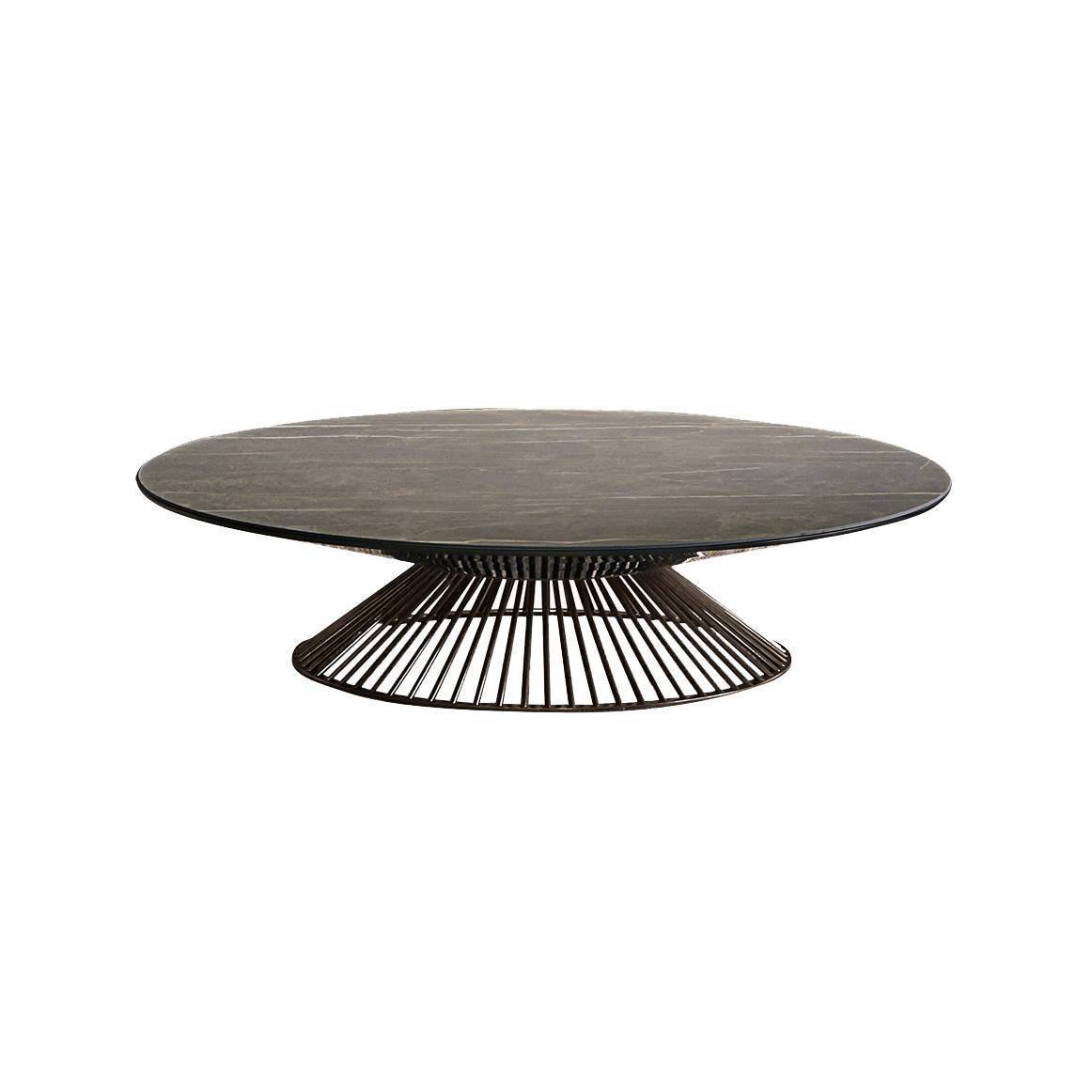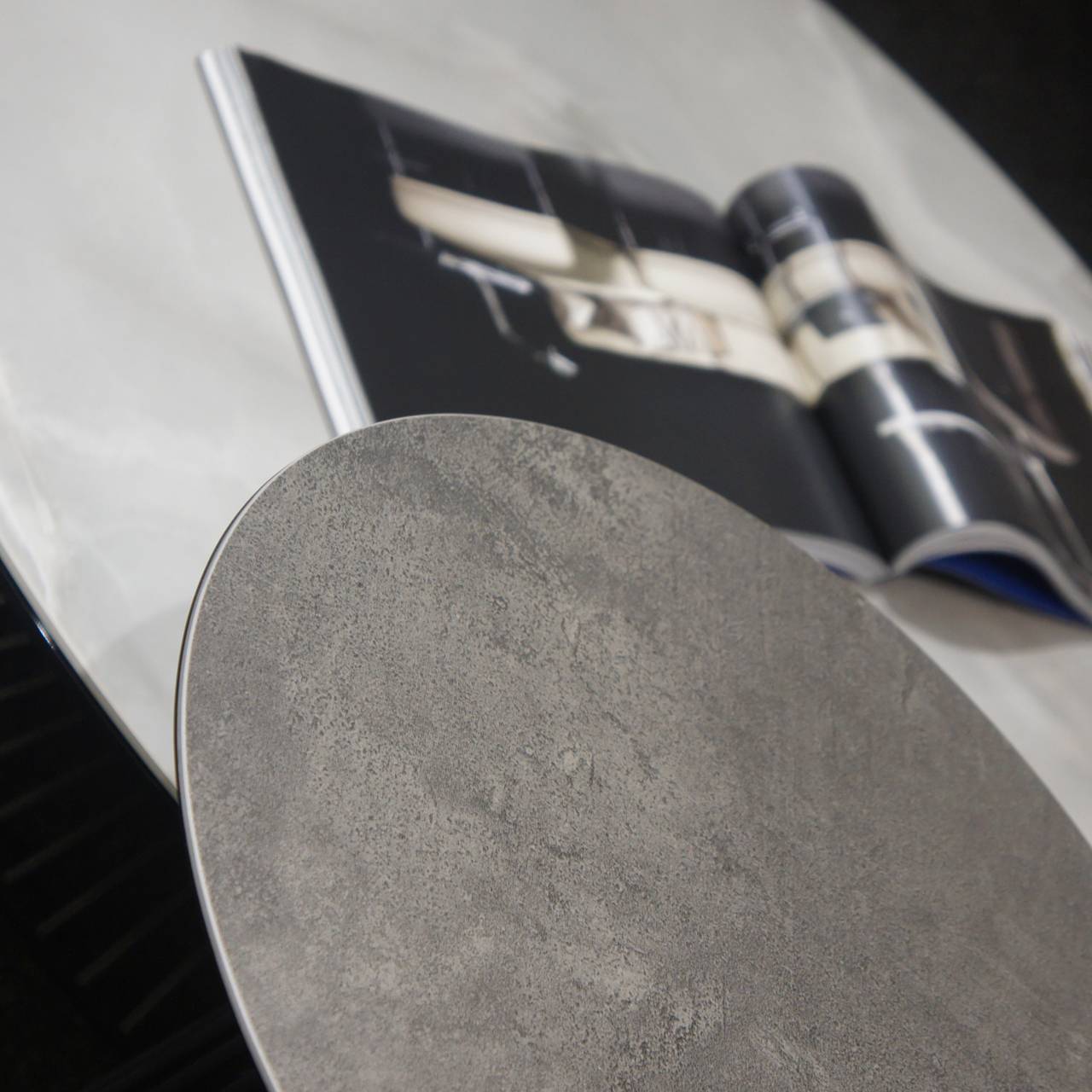 Круглый журнальный столик Gamma Arredamenti с керамической столешницей в отделке Limestone. В наличии также размер T16 (D50×H42 см) с чёрной керамической столешницей и T15 (D40×H50 см) с керамической столешницей в отделке отделке Ossido Bruno.