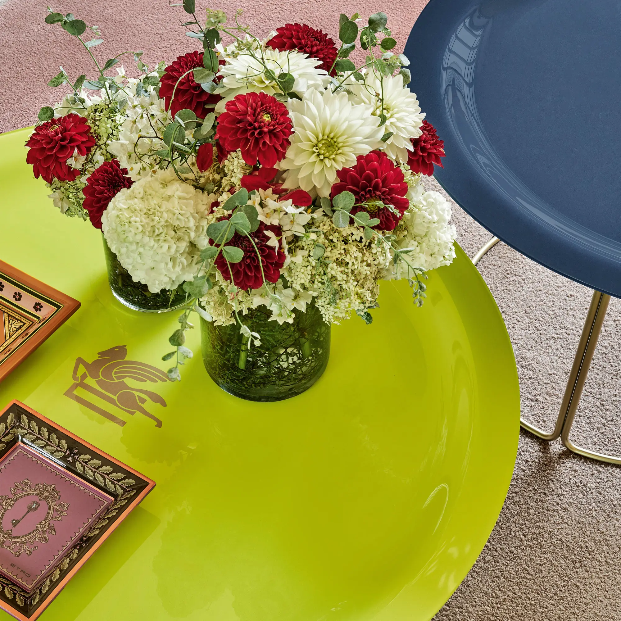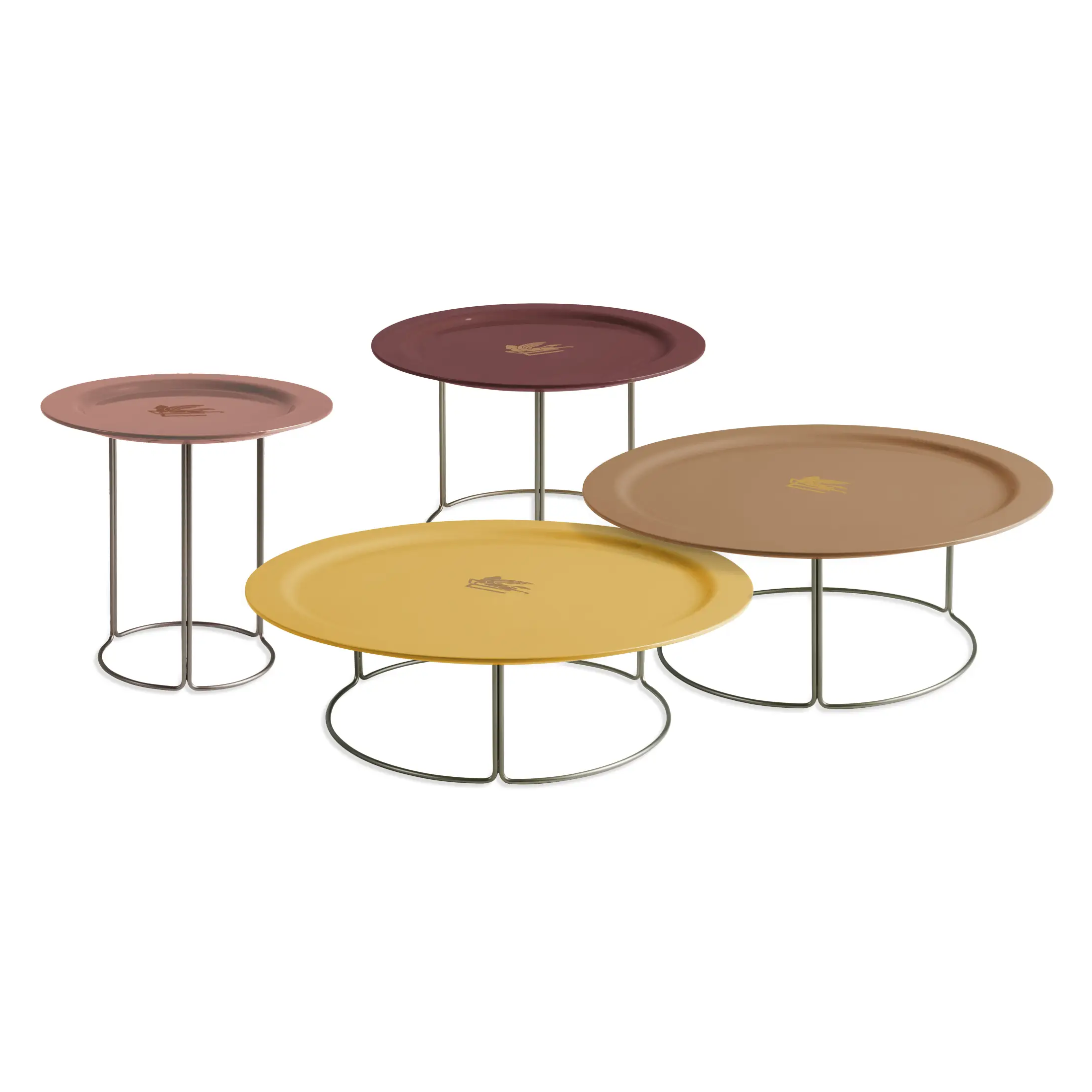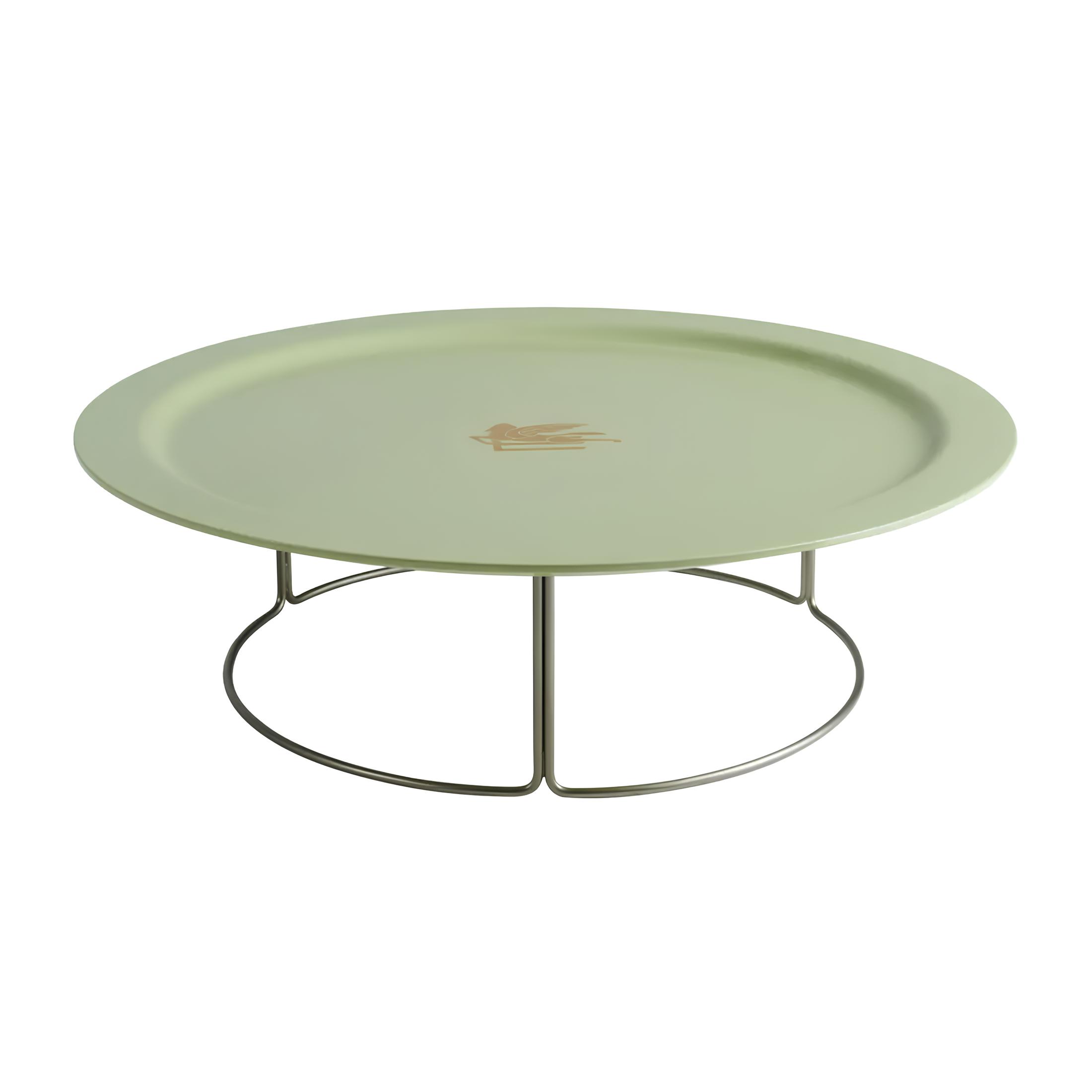 В центре каждой столешницы расположен фирменный логотип ETRO цвета бронзы — деликатный, но выразительный акцент, подчёркивающий принадлежность к Дому с уникальной художественной ДНК. Этот акцент вносит нотку узнаваемого итальянского характера, превращая лаконичный предмет в выразительный элемент композиции.