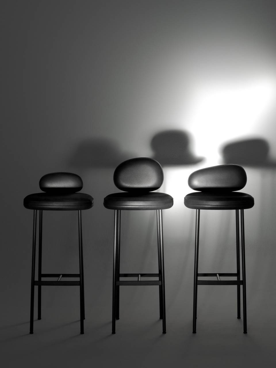 Барный стул Pebble Stool — это стул, который играет с концепцией симметрии и баланса, предлагая сиденья, напоминающие органические формы гальки, что видно из его названия.