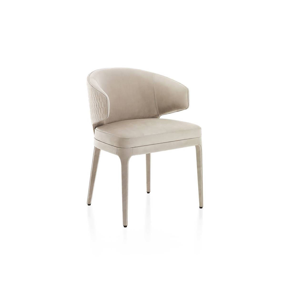 Стул Egoist DV Home Collection. Дизайн этой модели искусно балансирует на грани современного стиля и ар-деко: мелкая декоративная простёжка внешней части спинки сочетается с уютной неправильной формой формой и широкими, приземистыми очертаниями. Такая комбинация – идеальная формула стилистической универсальности для зоны столовой, не только значительно упрощающая подбор мебели, но и открывающая простор для творчества в оформлении интерьера.