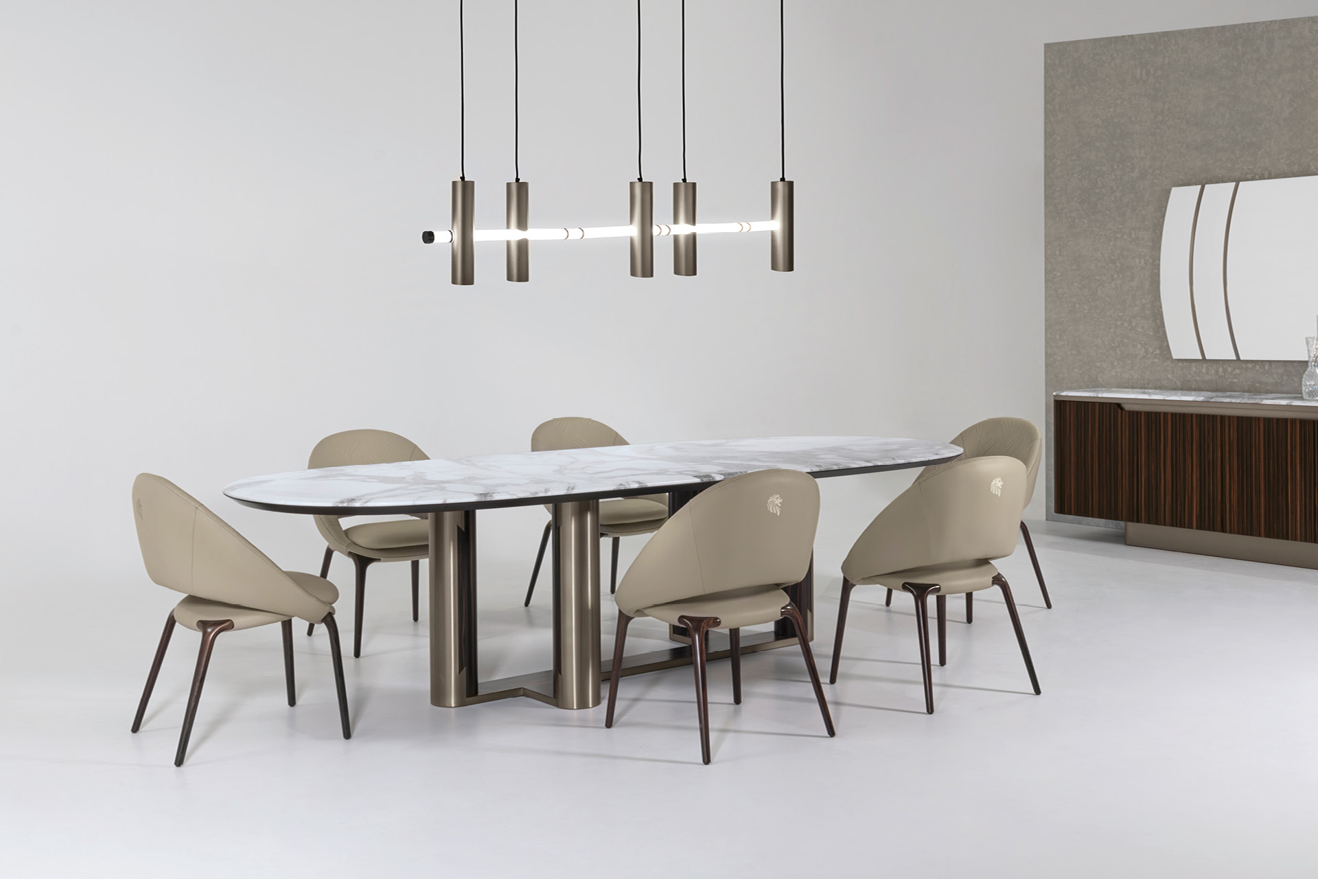 Обеденный стул Luxor от Giorgio Collection — это пример сдержанной элегантности и безупречного комфорта, где скульптурные формы сочетаются с высочайшим качеством отделки и внимания к деталям.
