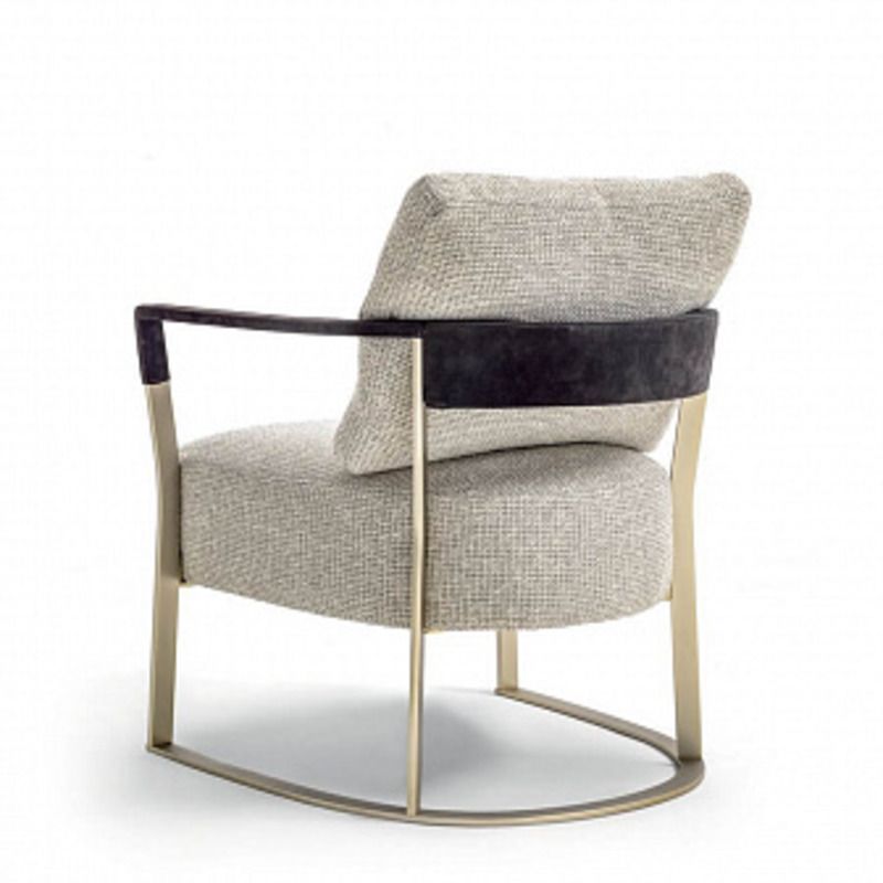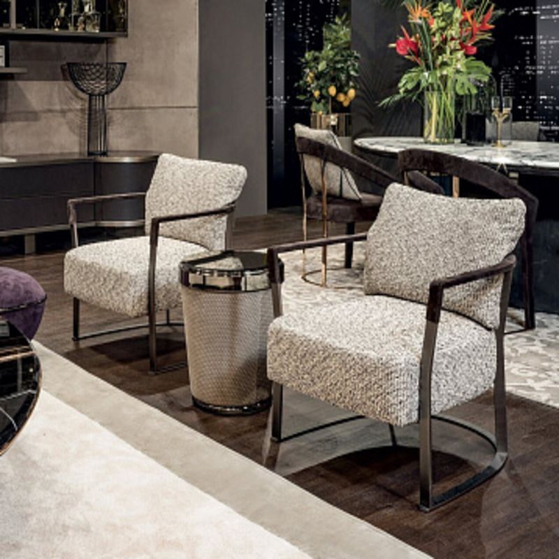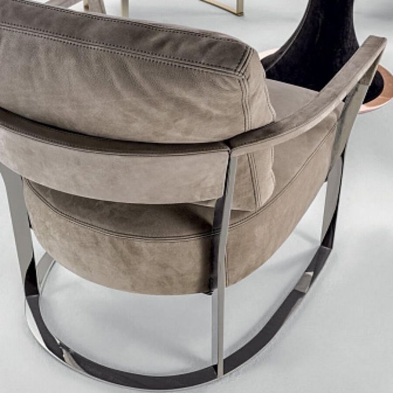 Каркас металлический, спинка изготовлена из древесного массива и обита натуральной кожей в тон основному цвету каркаса. Сидение модели выполнено из дерева и упругого пенополиуретана тройной жесткости, обивка из ткани или кожи – несъемная. Подушки под спину наполнены стерилизованным гусиным пухом, что придает им дополнительную мягкость.
