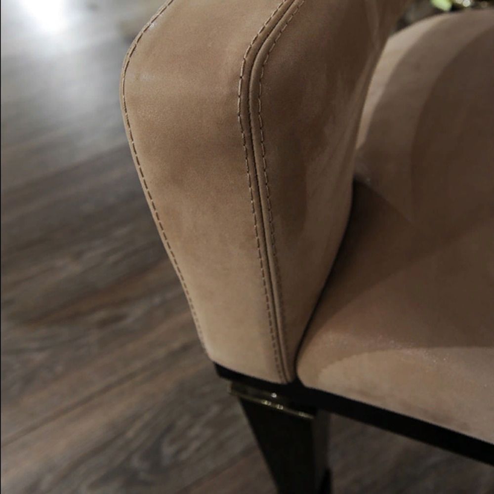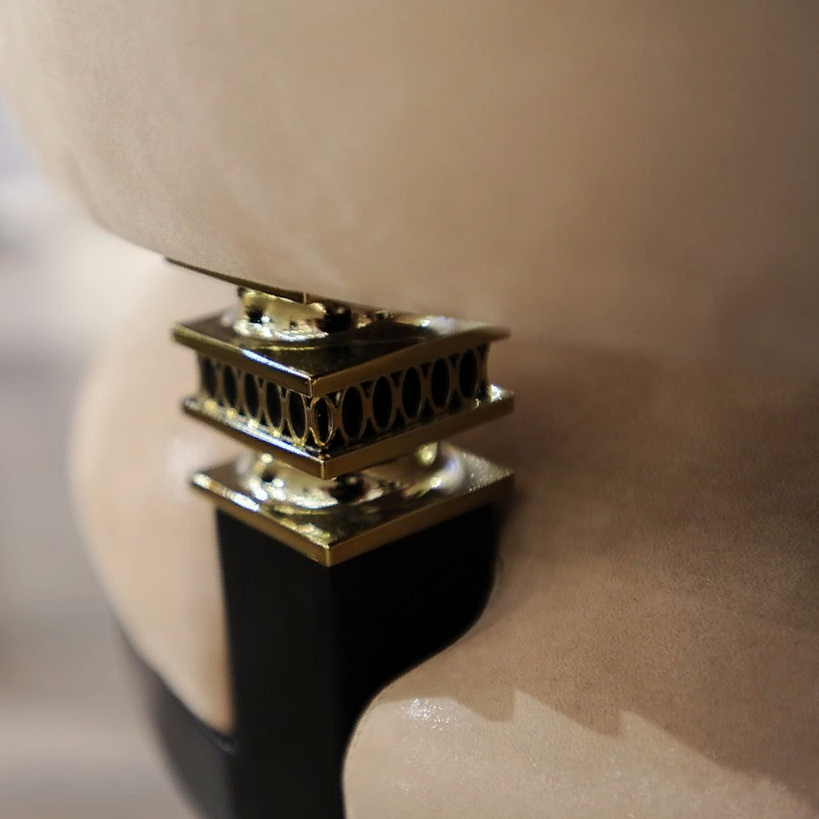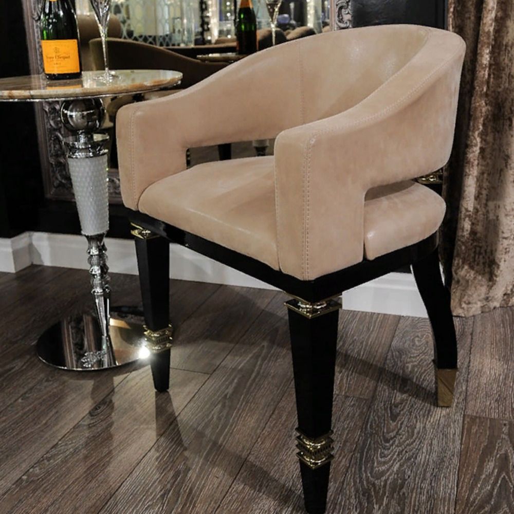 Выполнен из массива бука. Наполнитель пенополиуретан. Отделка в ассортименте. Ножки в черном лаке.