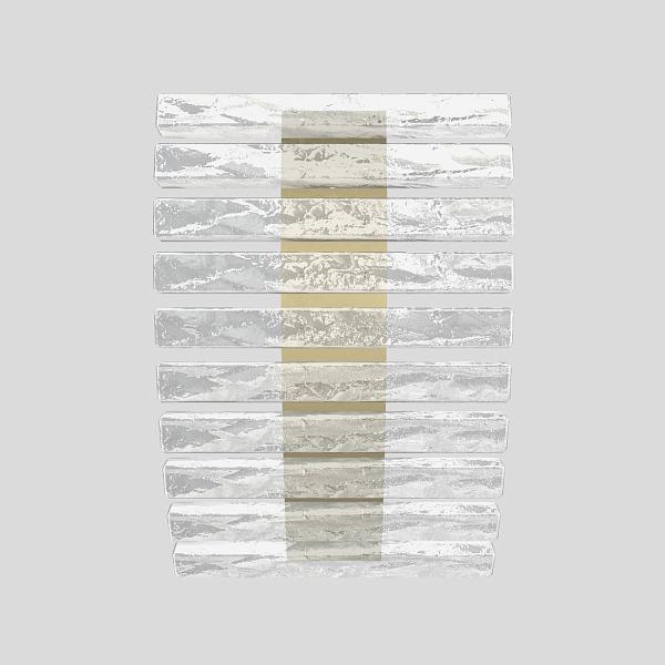 Материалы: Прочный металлический каркас, обеспечивающий долговечность и стабильность конструкции. В качестве рассеивателя используются стеклянные полосы с эффектом горного хрусталя, которые создают изысканную игру света, добавляя пространству элегантность и утонченное сияние. Такое сочетание материалов подчеркивает высокое качество исполнения и современный стиль коллекции.