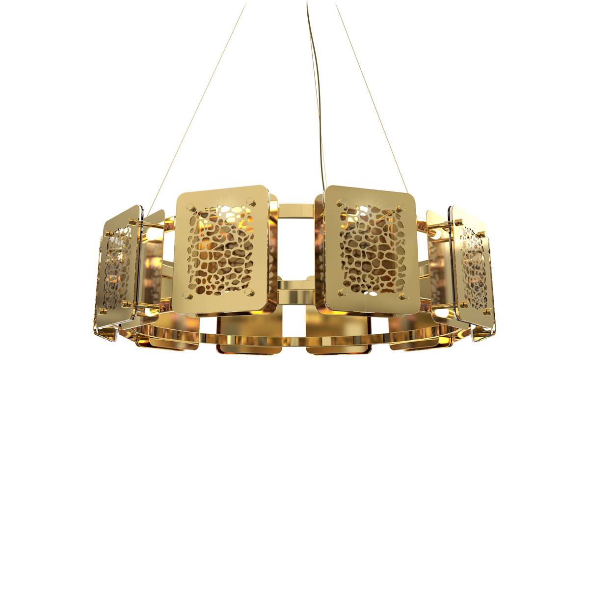 Люстра Safari Castro Lighting. Оригинальный дизайн этой люстры – идеальное сочетание лаконичности и роскоши и притягательная красота животных принтов. Выполненный вручную узор на металлических пластинах вместе с матовым стеклом создаёт интересный световой эффект. Safari отлично подойдёт для модерна и ар-деко и станет яркой и привлекающей внимание деталью интерьера.
