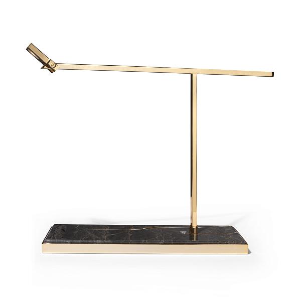Беспроводная лампа для чтения. Основание из полированного мрамора и металла; латунная ножка и регулируемый линейный рассеиватель. Основание содержит аккумулятор и систему беспроводной зарядки wireless, которую можно подсоединять к дивану Babylon Rack (зарядка на спинке) или стандартными устройствами QI-зарядки. Аккумулятор также можно заряжать через кабель USB-C (кабель входит в комплект, зарядное устройство не поставляется). Металлические детали доступны в матовой металлической отделке. Лампа представлена в двух модификациях.