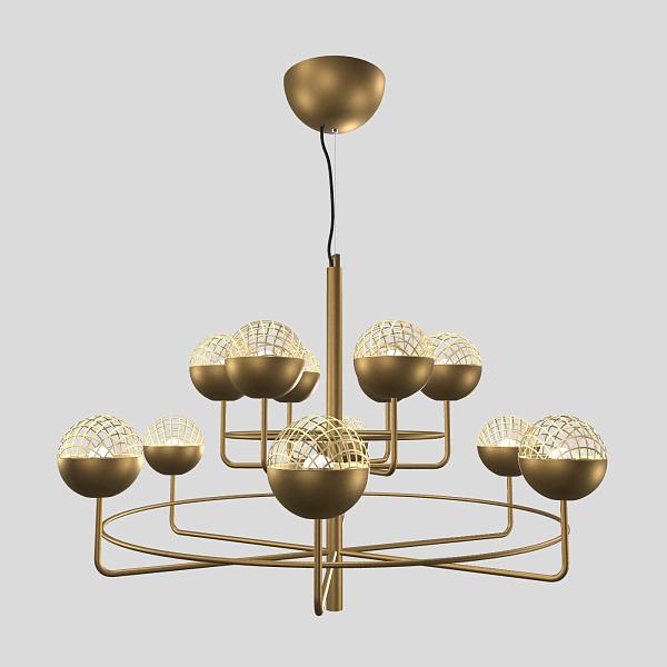 Материалы: Каркас светильника выполнен из окрашенного металла с матовой патиной, который обеспечивает прочность, долговечность и эстетическую привлекательность. Рассеиватели изготовлены из металлической сетки, которая не только защищает источник света, но и создает уникальный светотеневой эффект, придавая пространству атмосферность и визуальную динамику.