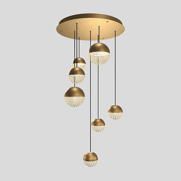 Материалы: Каркас светильника выполнен из окрашенного металла с матовой патиной, который обеспечивает прочность, долговечность и эстетическую привлекательность. Рассеиватели изготовлены из металлической сетки, которая не только защищает источник света, но и создает уникальный светотеневой эффект, придавая пространству атмосферность и визуальную динамику.