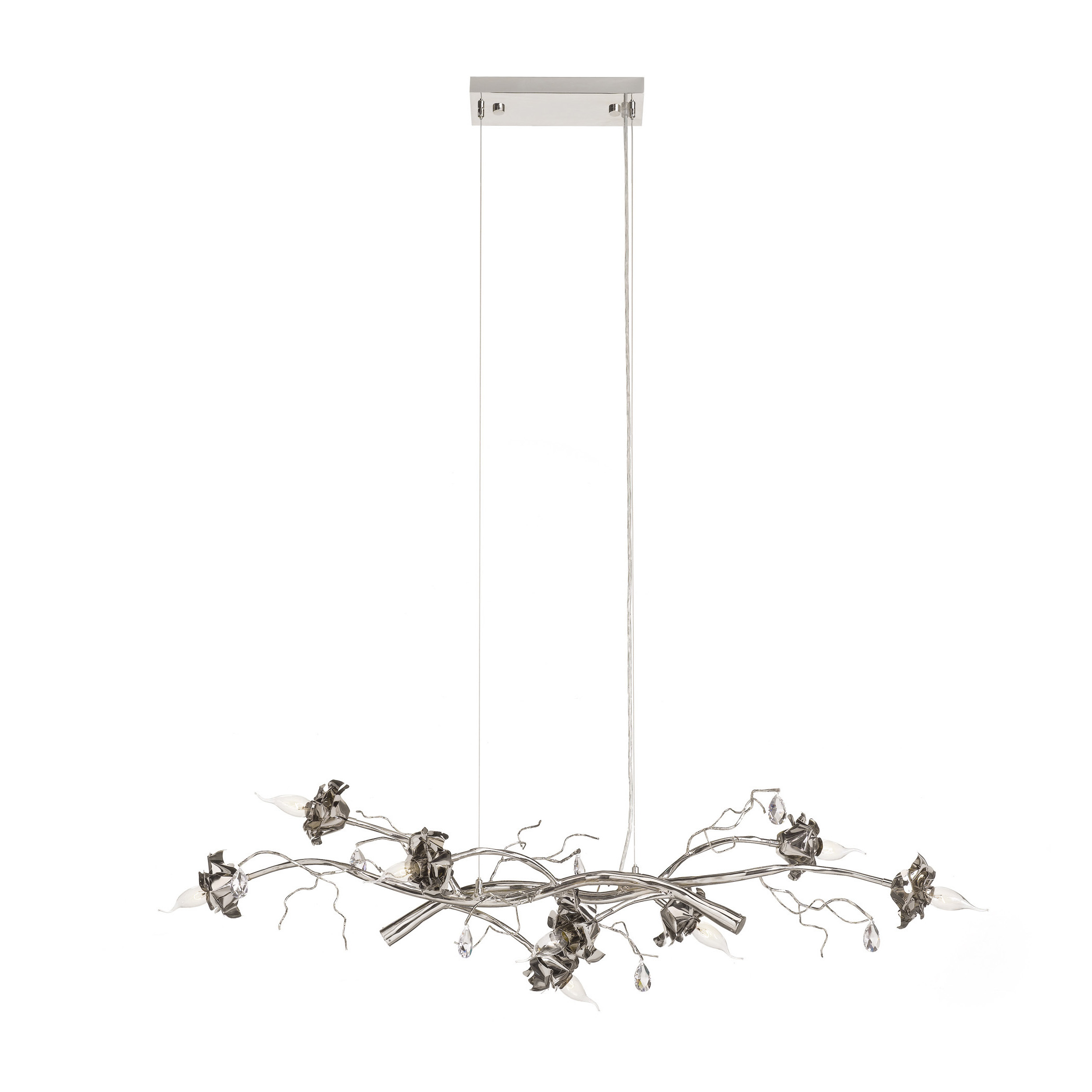 Металл — основа конструкции, вручную обработанная и сформированная в плавные, цветочные формы. Доступны различные отделки, включая полированный никель и сатиновое золото.