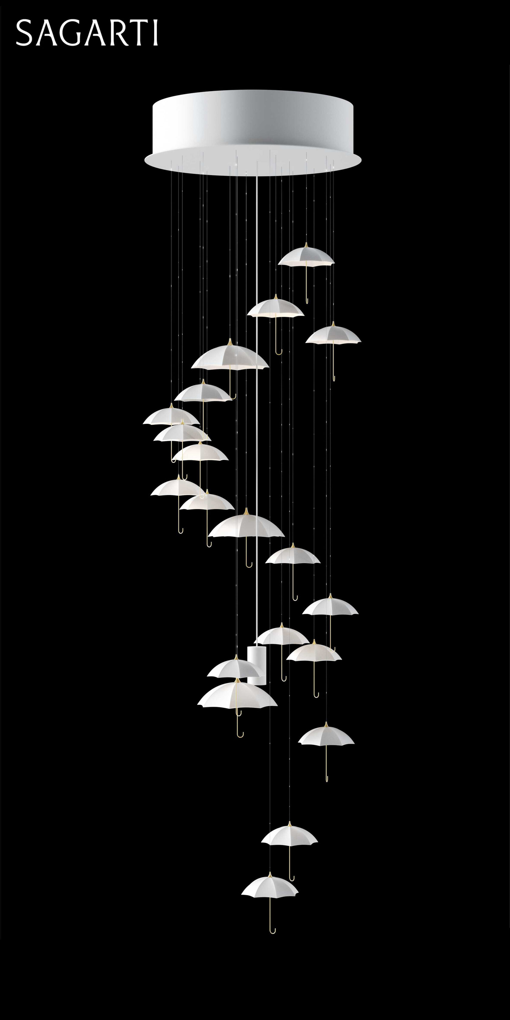 Материал подвесных зонтов: бисквитный костяной фарфор, жидкое золото, кристаллы Swarovski.