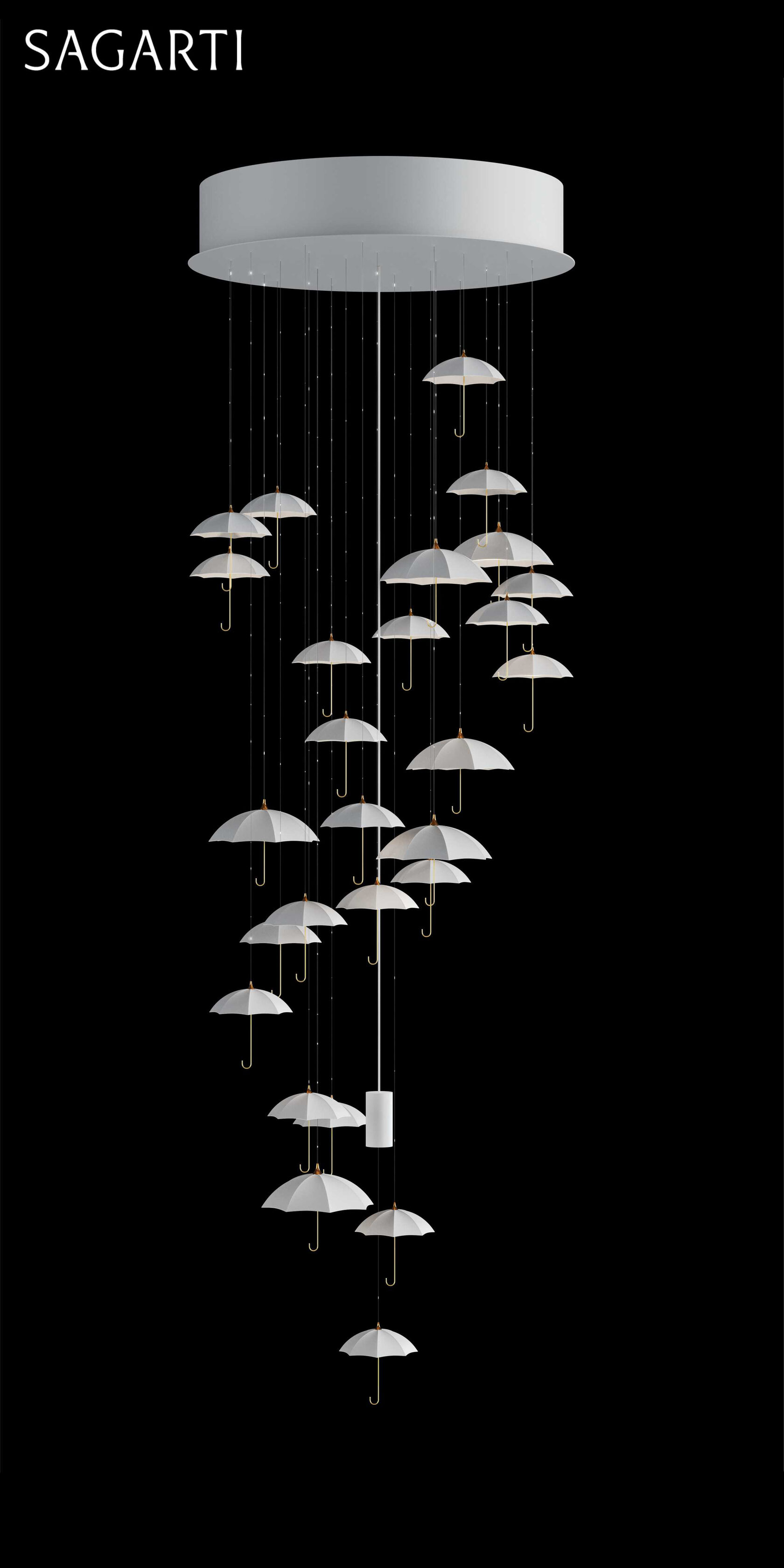 Материал подвесных зонтов: бисквитный костяной фарфор, жидкое золото, кристаллы Swarovski.