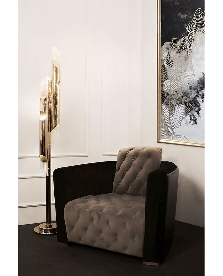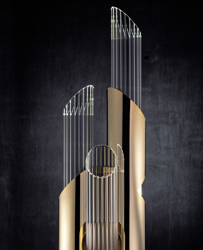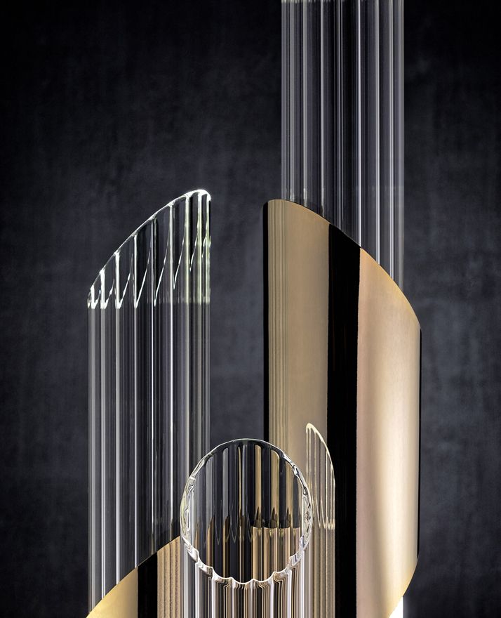 Торшер Draycott невероятно скульптурен. Тонкие рифленые цилиндры из хрустального стекла заключены в тонко пропорционированные структуры, как и основание, выполненные из позолоченной латуни.
