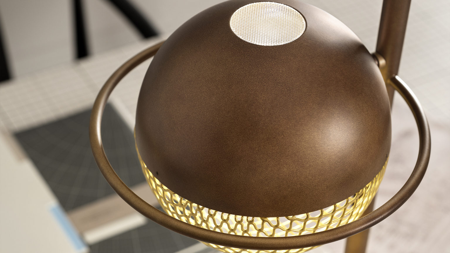 Iglù — это гармония формы и света, рожденная из созерцания идеальной геометрии сферы. Металлическая сетка придает ей узнаваемый, выразительный облик, превращая простую конструкцию в художественный объект. Вместо того чтобы сдерживать свет, она рассекает его, создавая изысканный узор светотени, который оживляет пространство. Так металл, преломляя сияние, превращается в драгоценный световой артефакт.