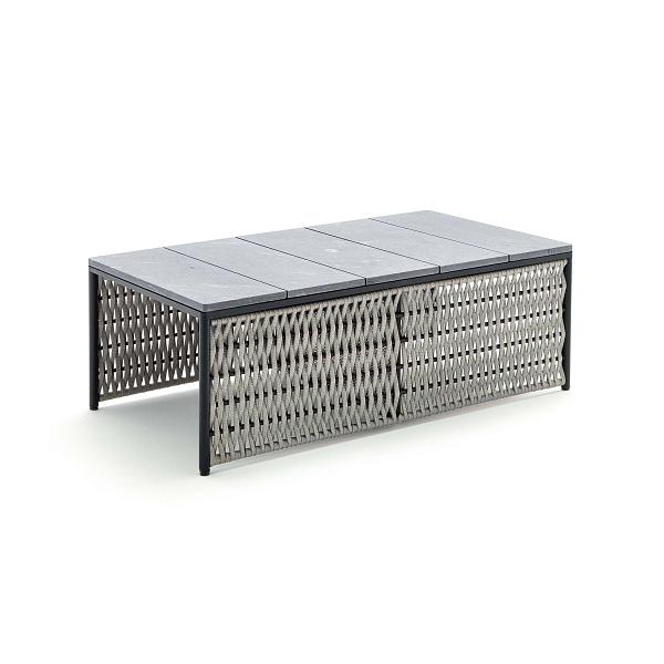 Уличный квадратный столик из коллекции Oasi Giorgio Collection. Дизайн был разработан Castello Lagravinese Studio. Для этого столика характерна выразительная лаконичность, созданная сочетанием строгого натурального камня и традиционного для outdoor-мебели декоративного плетения. Благодаря тщательно продуманной конструкции он не только эстетичен, но и многофункционален – его можно использовать как временную систему хранения для уличных пуфов, что позволяет быстро трансформировать пространство зоны отдыха при необходимости. Столик в наличии с плетением чёрного цвета; под заказ доступны также другие расцветки.