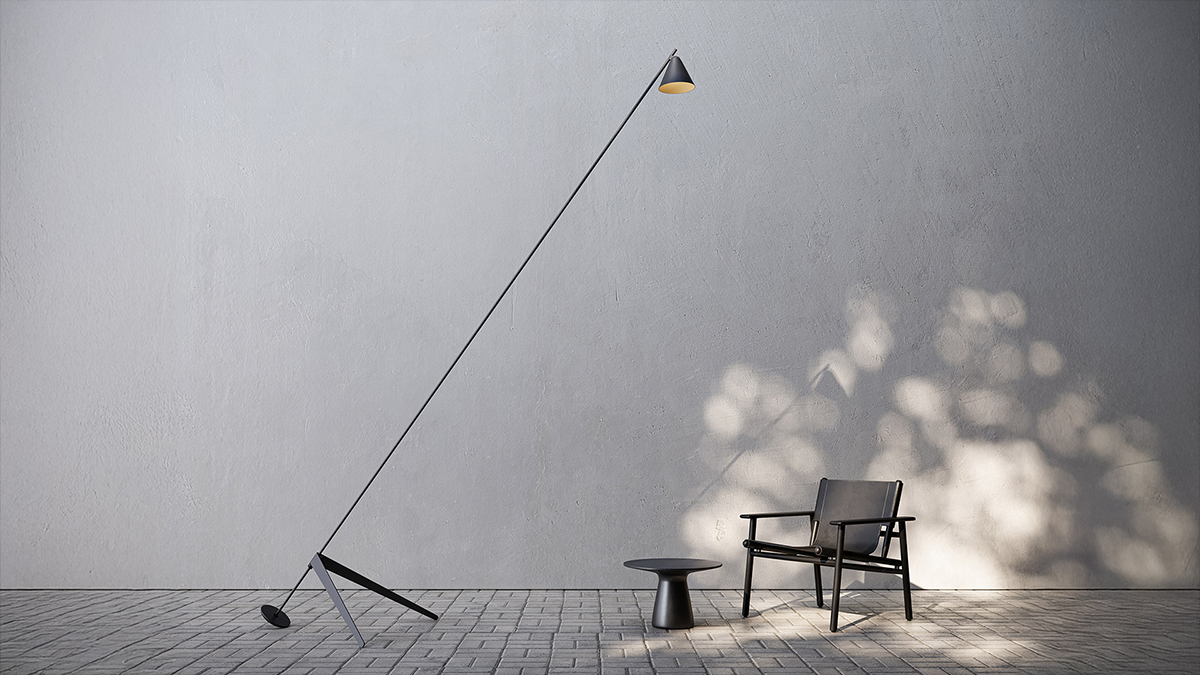 Он сочетает в себе длинную тонкую ножку с рассеивателем, V-образное основание которого — центральный элемент дизайна. Оно удерживает ножку в вертикальном положении с наклоном до 30 градусов благодаря системе балансировки и взаимозаменяемых компонентов.
