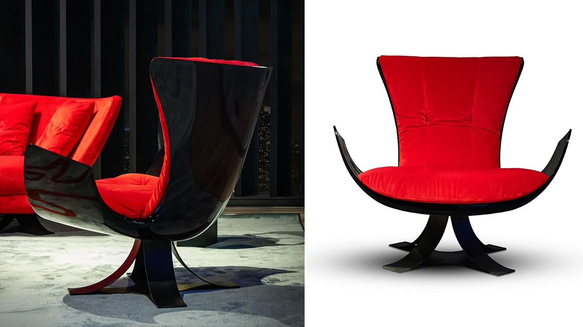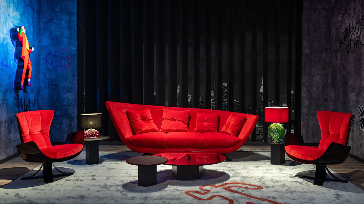 Визуальный нарратив системы развивается через нерегулярные объемы и текучие формы, которые образуют и обволакивают как пространство, так и тех, кто в нем находится. «Вся вселенная состоит из изгибов», — говорит Коган, цитируя легендарного Оскара Нимейера.7. КРЕСЛО THE JOKER THRONE, FORMITALIA