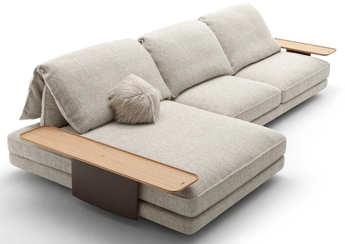 Диван David разработан для обеспечения максимальной функциональности без компромиссов. Два порта USB-C, встроенные непосредственно в основание подлокотника, позволяют всегда иметь под рукой зарядное устройство. В версии с подлокотником из натурального дуба предусмотрено незаметное и элегантное беспроводное зарядное устройство, сочетающее в себе дизайн и практичность.