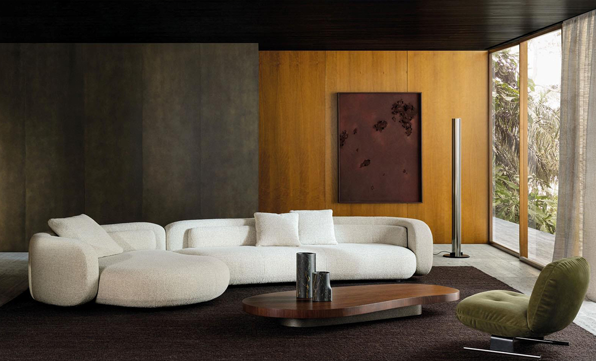 Одна из самых отличительных особенностей — визуальная легкость: инновационная конструкция полностью скрывает ножки, создавая эффект парения, который подчеркивает элегантность форм.