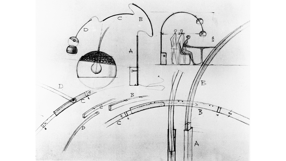 Братья Акилле и Пьер Джакомо Кастильони создали торшер Arco в 1962 году, представив миру новое дизайнерское решение, которое до сих пор актуально, – направленный свет, не требующий подвешивания к потолку. Стальной изогнутый профиль держит диффузор, а мраморный постамент служит противовесом.