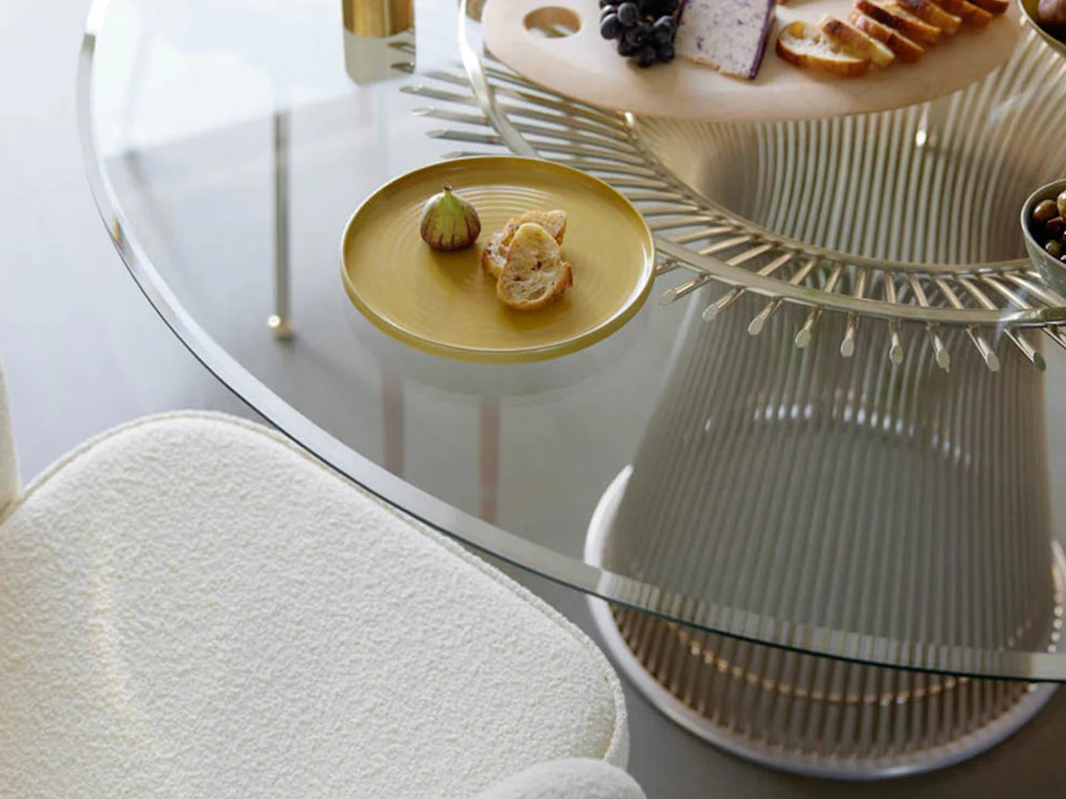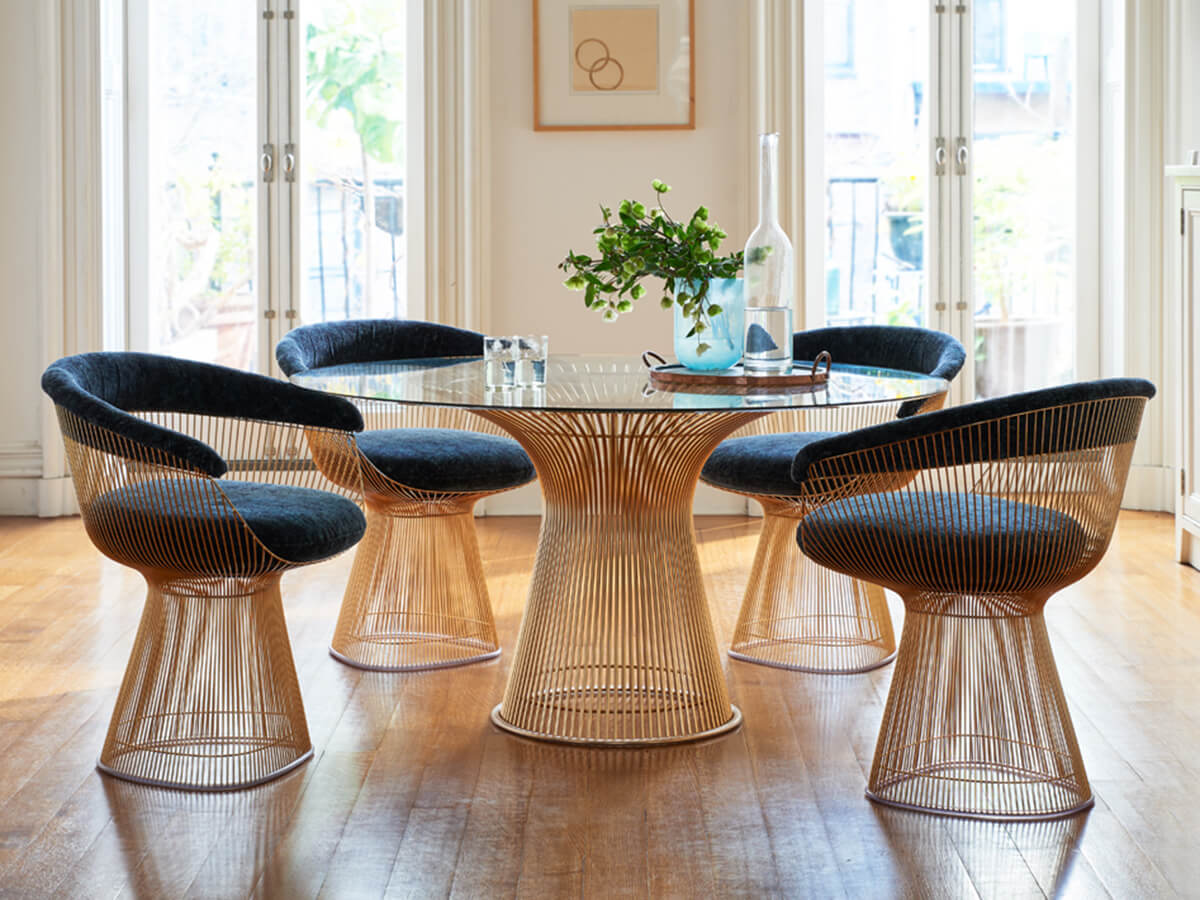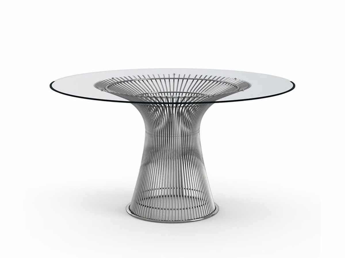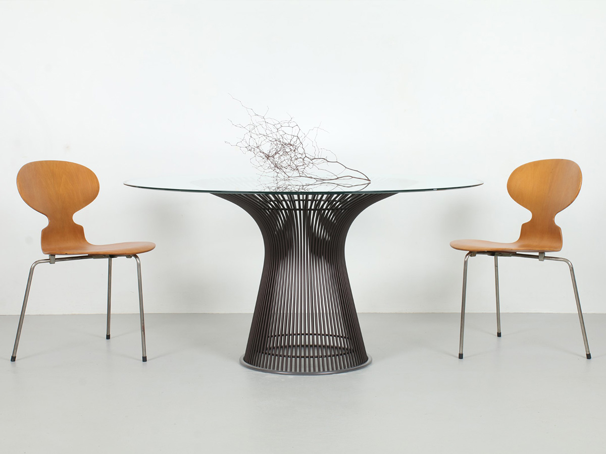 Фактически первым, кто обратился к фигурному металлическому основанию, был Уоррен Платнер. В 1966 году он спроектировал обеденный стол, запечатлев «декоративные, нежные и изящные» формы, которые стали активно проникать в современный дизайн-словарь.
