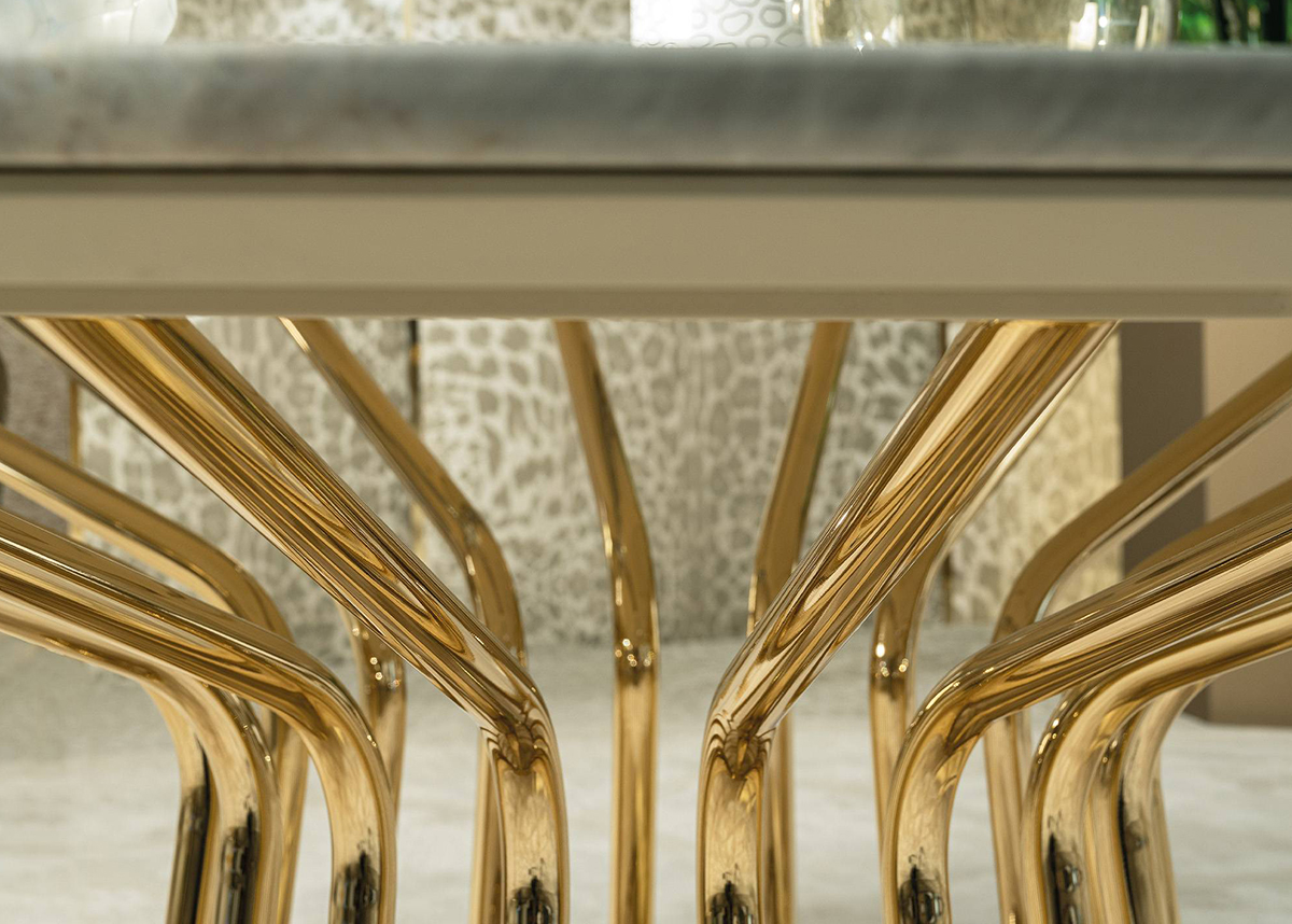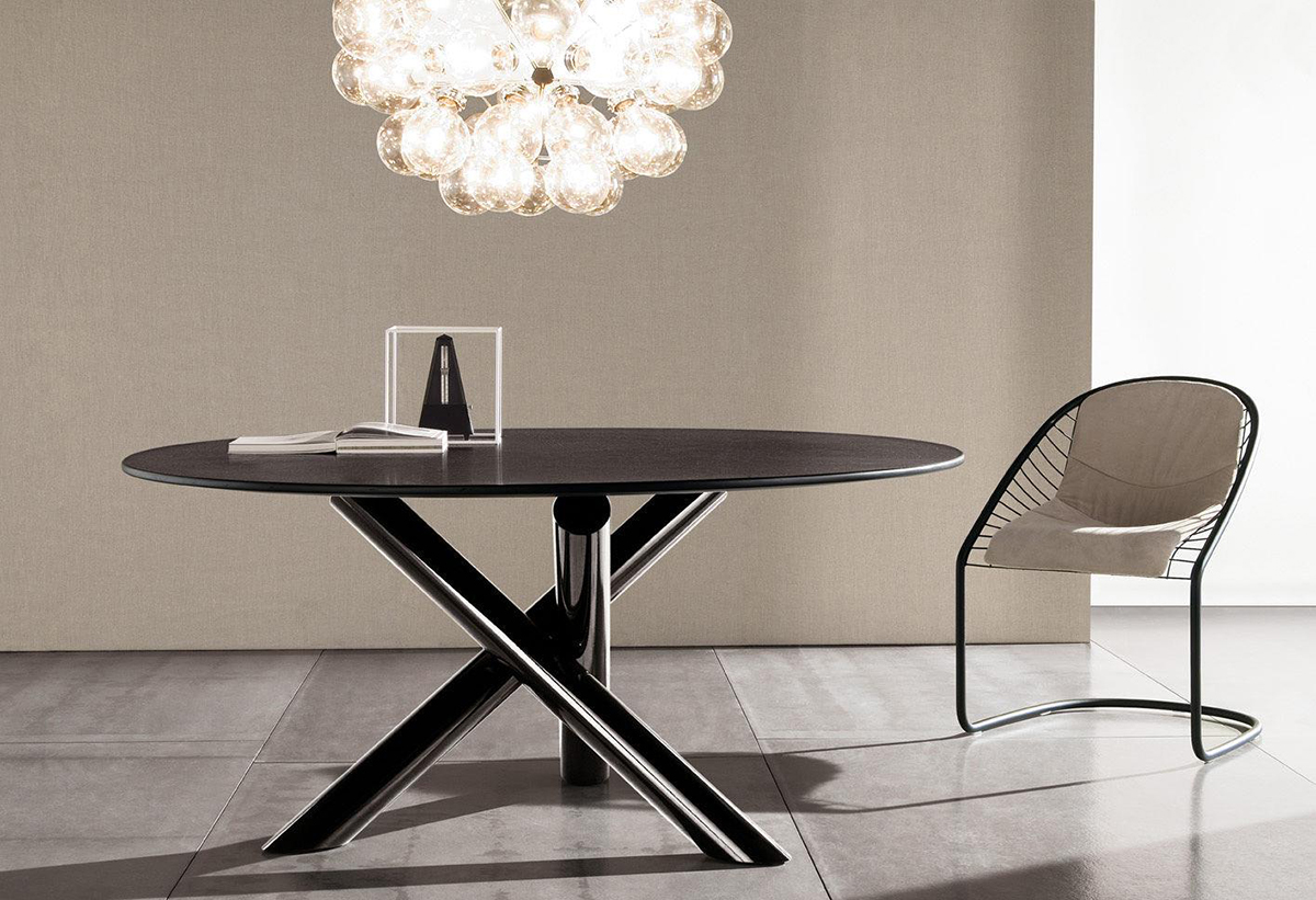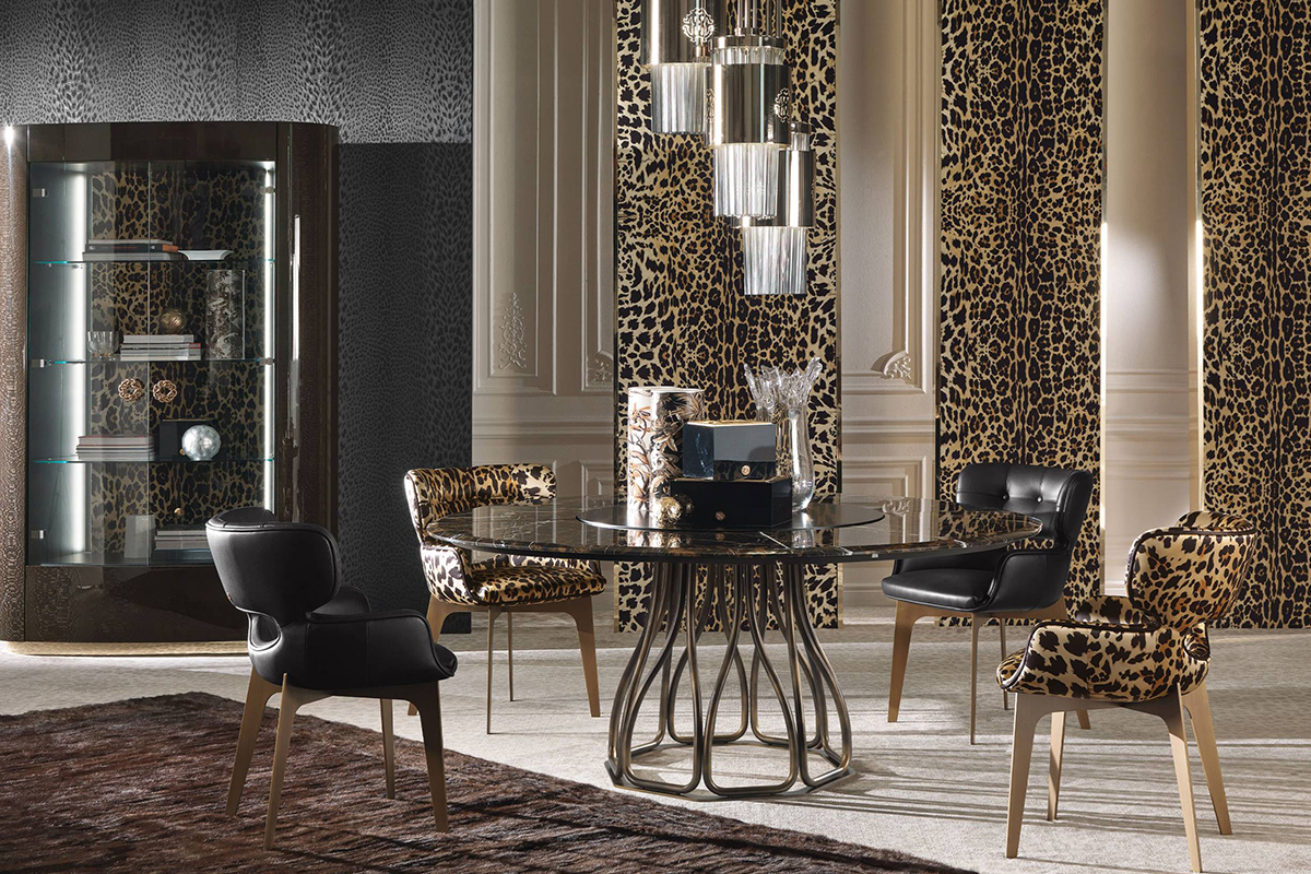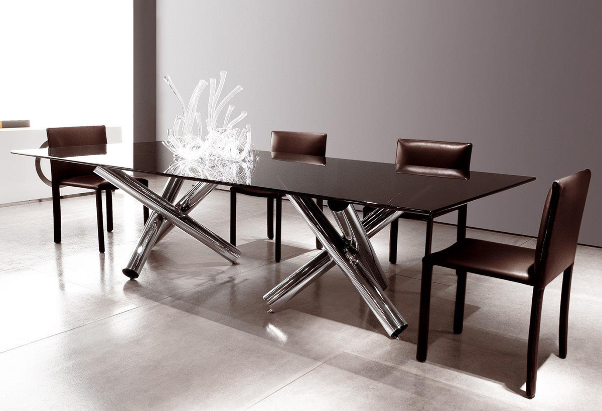 Родольфо Дордони создал скульптурный обеденный стол Van Dyck, сочетающий в себе сложные структурные детали и роскошную отделку. Эффектное основание представляет собой пересечение сварных металлических труб диаметром 10 см в отделке Black Nickel.