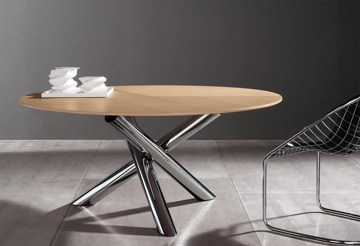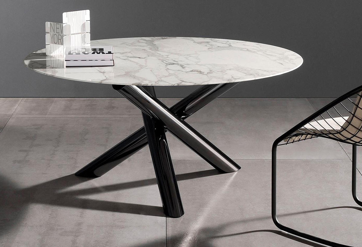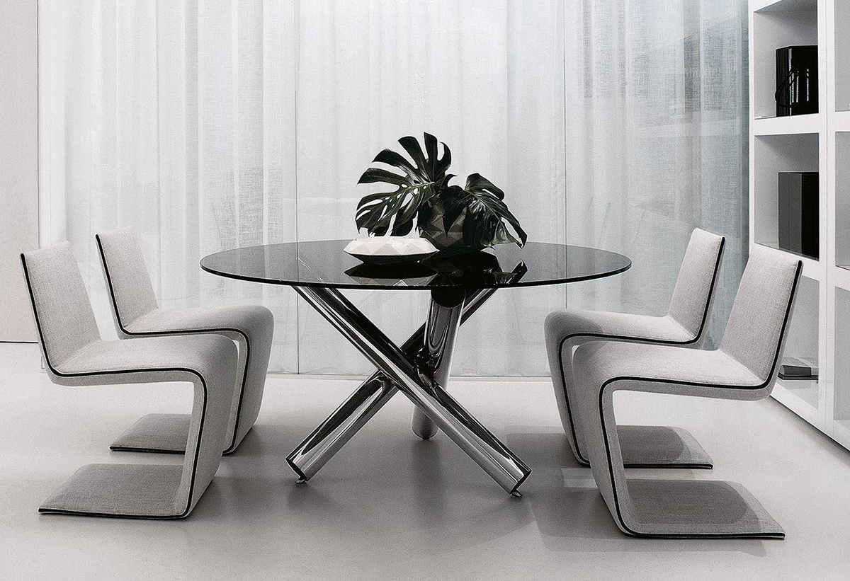 Родольфо Дордони создал скульптурный обеденный стол Van Dyck, сочетающий в себе сложные структурные детали и роскошную отделку. Эффектное основание представляет собой пересечение сварных металлических труб диаметром 10 см в отделке Black Nickel.