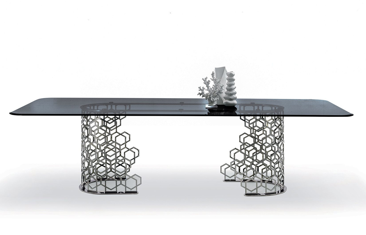 Джузеппе Яспарра спроектировал удивительную серию столов Manfred. Ажурное основание Sequence, составленное из сот – знакового рисунка Longhi, играет с нашим восприятием: центральная ось остается пустой, а весь вес перенесен на боковые элементы, которые, за счет узорчатости, кажутся чрезвычайно легкими и воздушными.