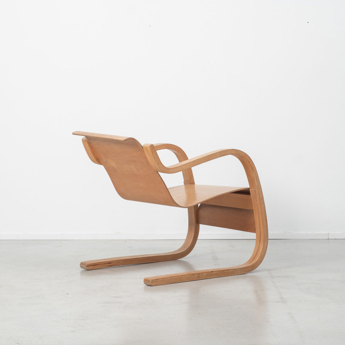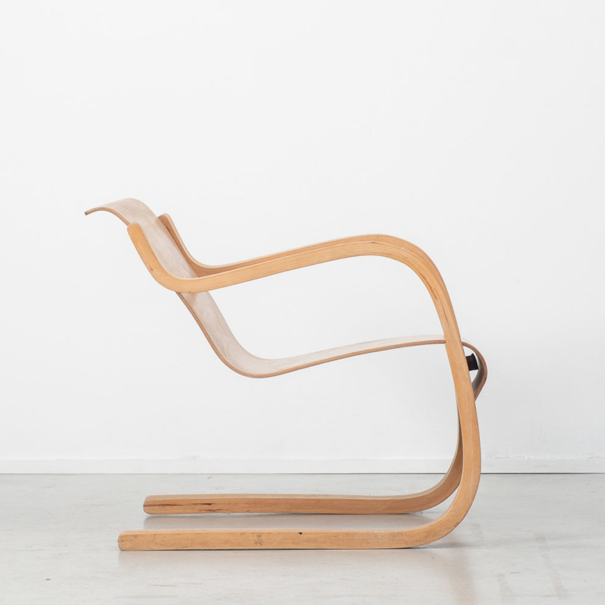Кресло для отдыха 31 – невероятно редкий оригинальный образец скандинавского модернизма, разработанный Алваром Аалто для санатория Паймио. Консольные сиденья кресла опираются на прочную структуру из гнутой березовой фанеры.