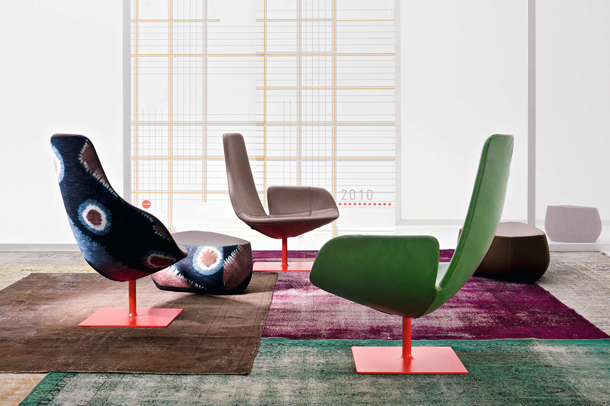 Эффектный вырез на спинке символизирует заливы северного побережья. Асимметричная форма кресла диктует интерактивное взаимодействие пользователя с предметов: «для комфорта нужно непременно найти асимметричную позу – опереться на спинку, расположенную сбоку», – рассказывает Патрисия Уркиола, описывая одну из своих самых любимых работ.3. КРЕСЛО INNOVATION C, BLA STATION