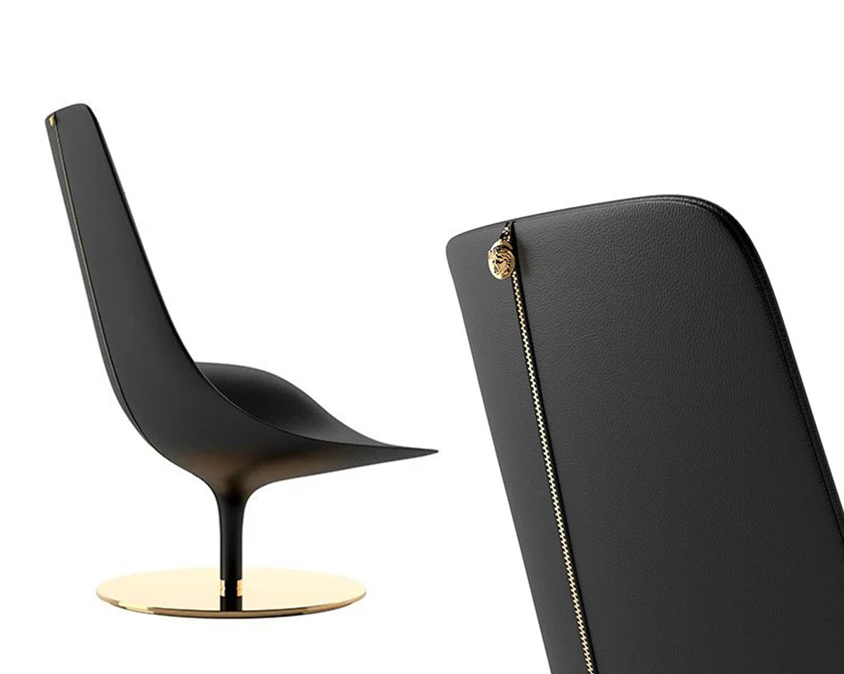 Одна из самых ярких моделей коллекции Versace Home – асимметричное кресло Venus, спроектированное Людовикой Серафини и Роберто Паломба. Чувственный силуэт определяется высокой тонкой спинкой, асимметричными подлокотниками и обтекаемыми формами. Молния с замочком в виде логотипа Versace украшает спинку и отсылает к образу элегантного платья.