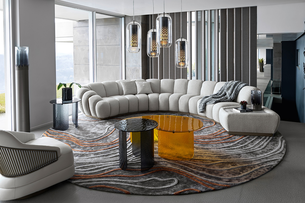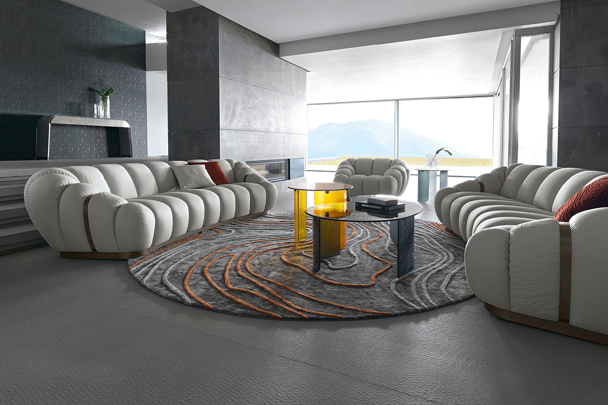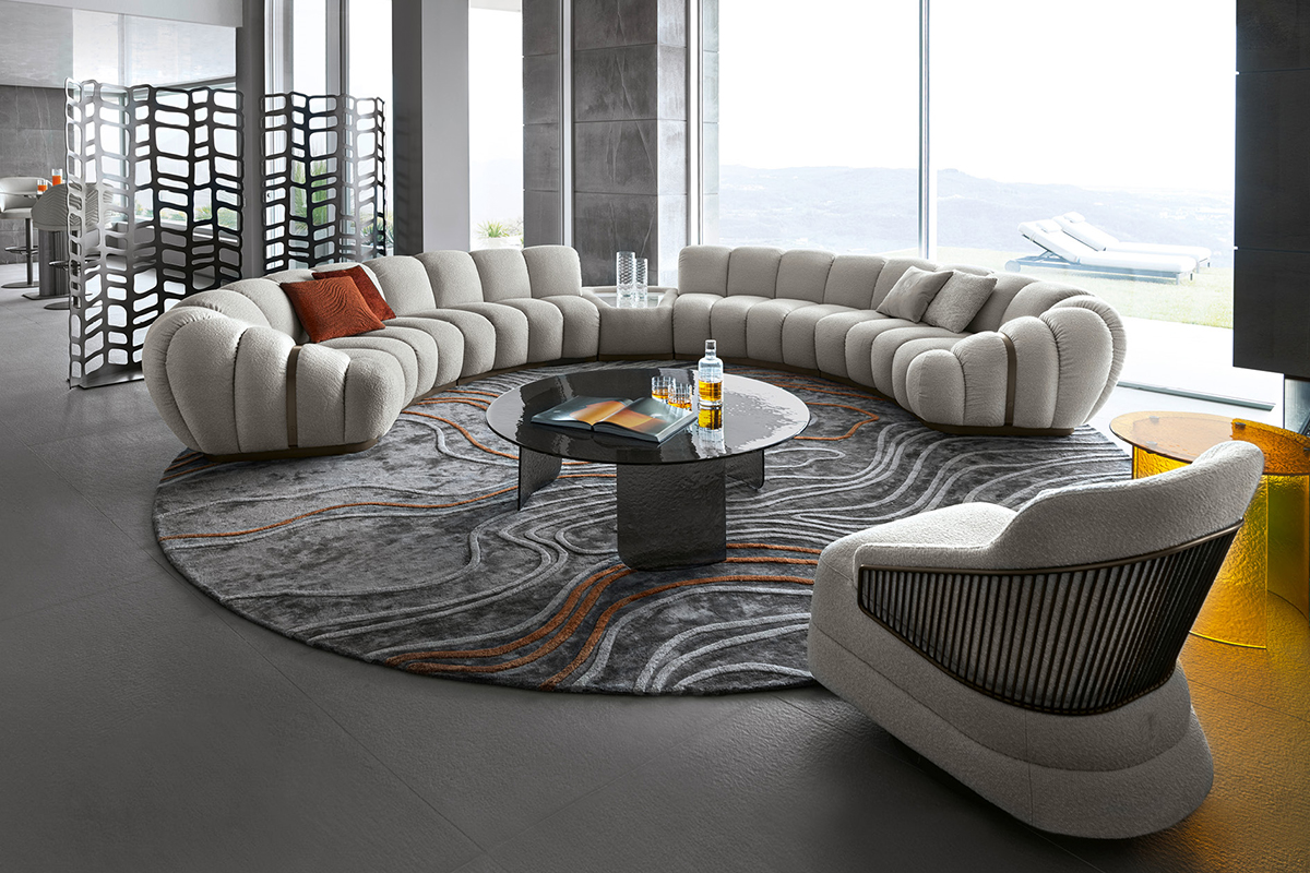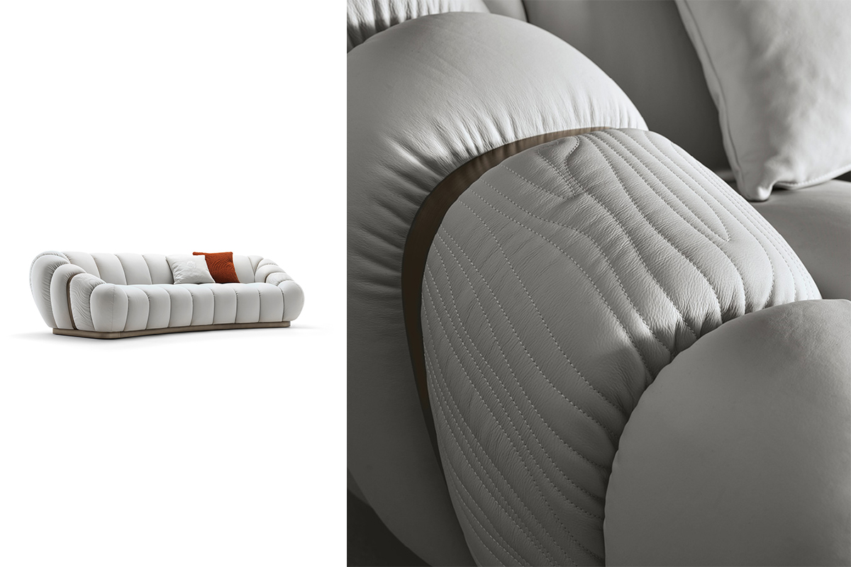 Одна из самых удивительных и необычных моделей Giorgio Collection — объемный диван Trésor, созданный Castello Lagravinese Studio. Характерные особенности — ритмичная строчка, очерчивающая выпуклые секции сиденья, и оформленные художественной строчкой подлокотники. Настоящее сокровище для гостиной.МОДУЛЬНЫЙ ДИВАН TRÉSOR, GIORGIO COLLECTION