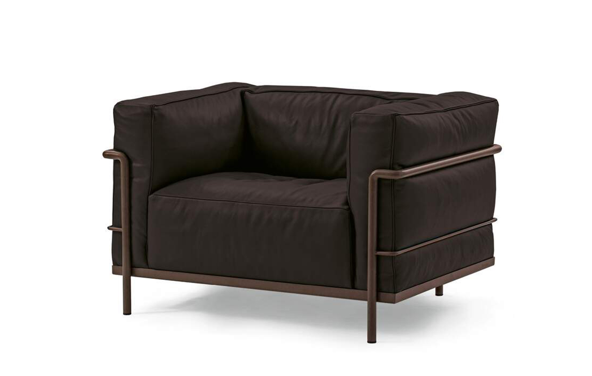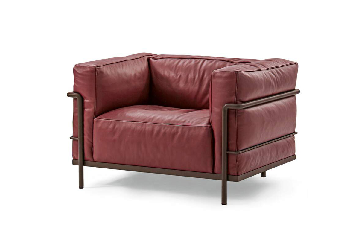Начнем с главного. Кресло LC3 – абсолютная икона дизайна, созданная звездным трио (Ле Корбюзье, Пьер Жаннере и Шарлотта Перриан) в 1929 году. Предмет отличается строгой геометрией, единой высотой подлокотников и спинки, широким сиденьем и модернистским контрастом трубчатой стальной конструкции с мягкой обивкой.