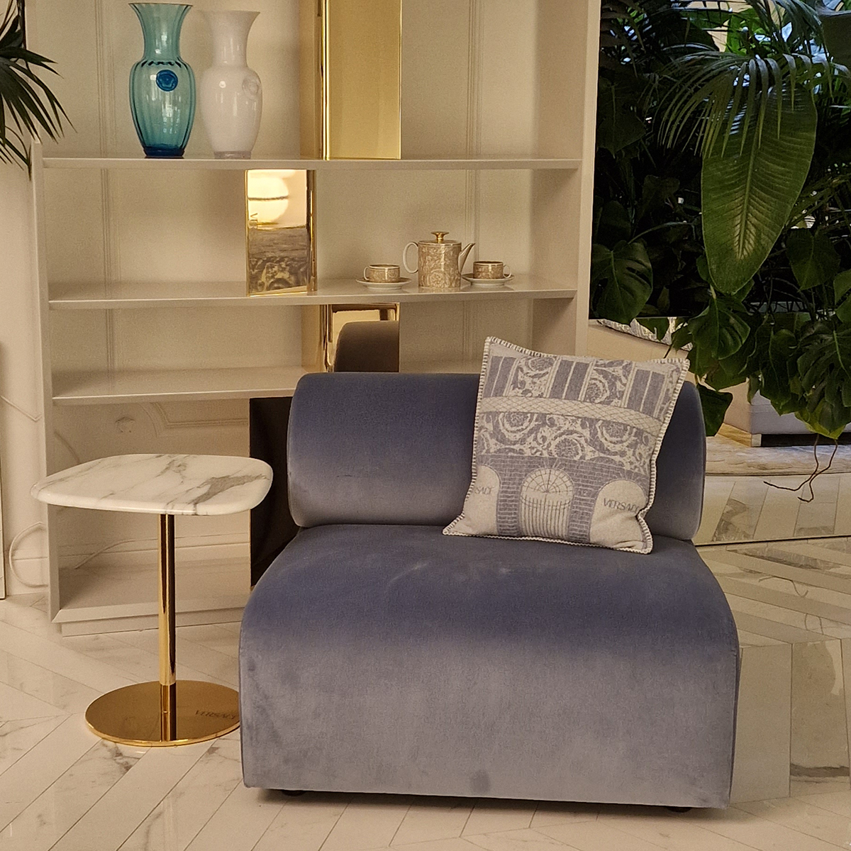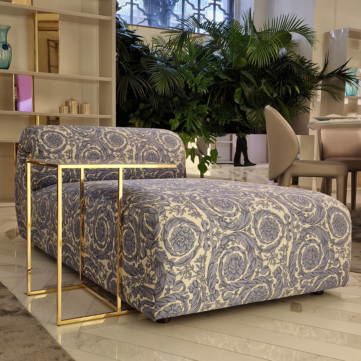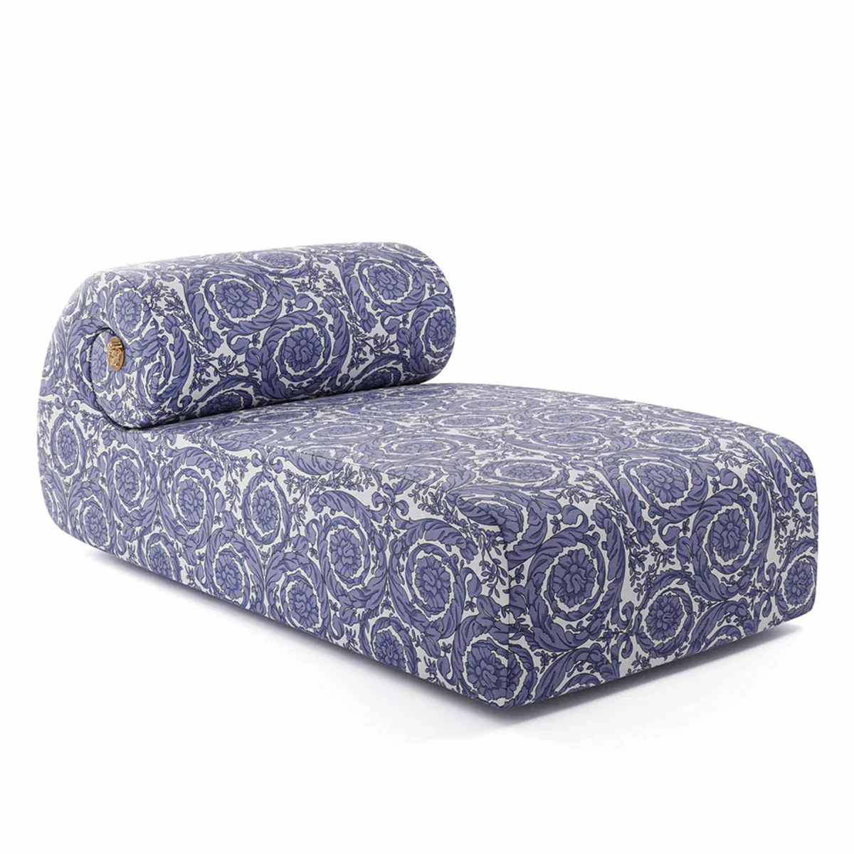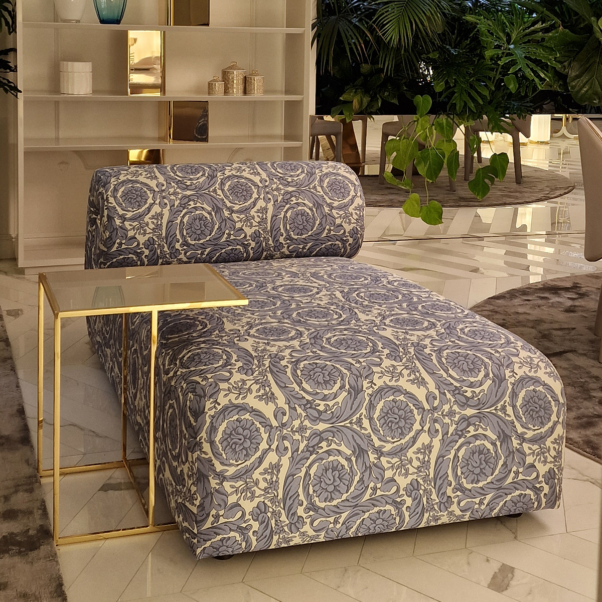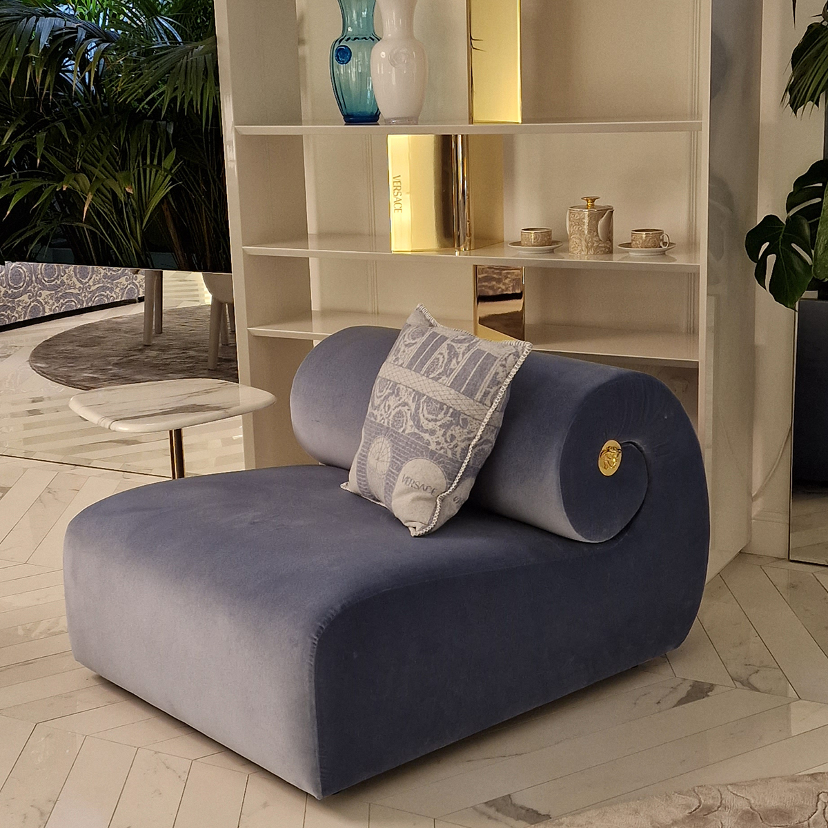 Изысканно разворачивающиеся листья аканта фирменного принта Versace Barocco образуют обволакивающую форму завитка спинки Acantho. Знаменитая Medusa украшает боковую часть спинки, закрепляя динамичное движение, определяющее дизайн кушетки.В серии Acantho Versace Home есть и кресло, которое за счет идентичной формы и продолговатого сиденья смотрится больше как миникушетка. Кстати, в этот раз многие бренды применили этот прием, но мы расскажем о нем в следующих статьях.