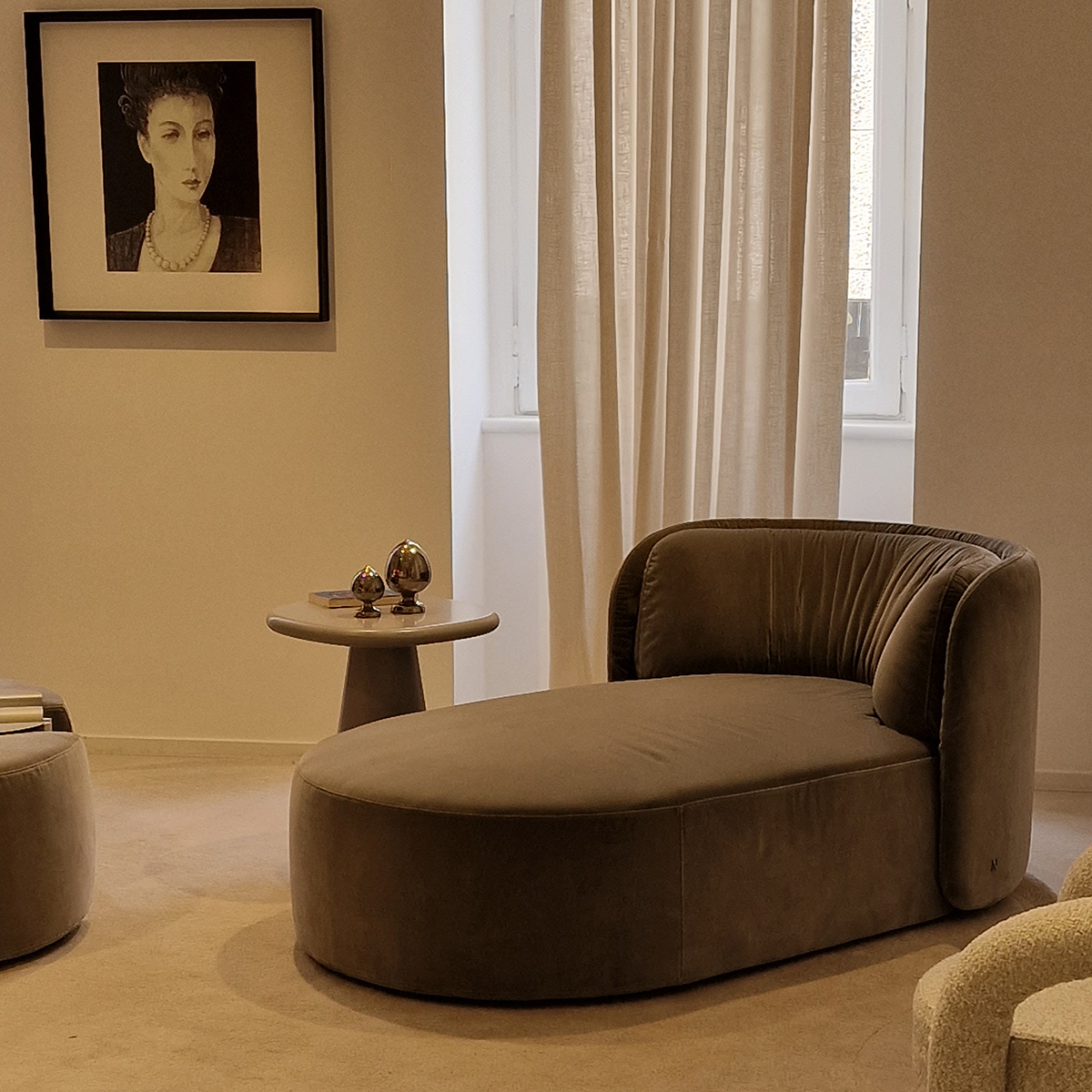 Studio63 спроектировала кушетку Rosè, характеризующуюся органическим дизайном и мягкими линиями. Универсальность предмета позволяет ему соответствовать потребностям любой жилой зоны, например, гостиной или спальни.