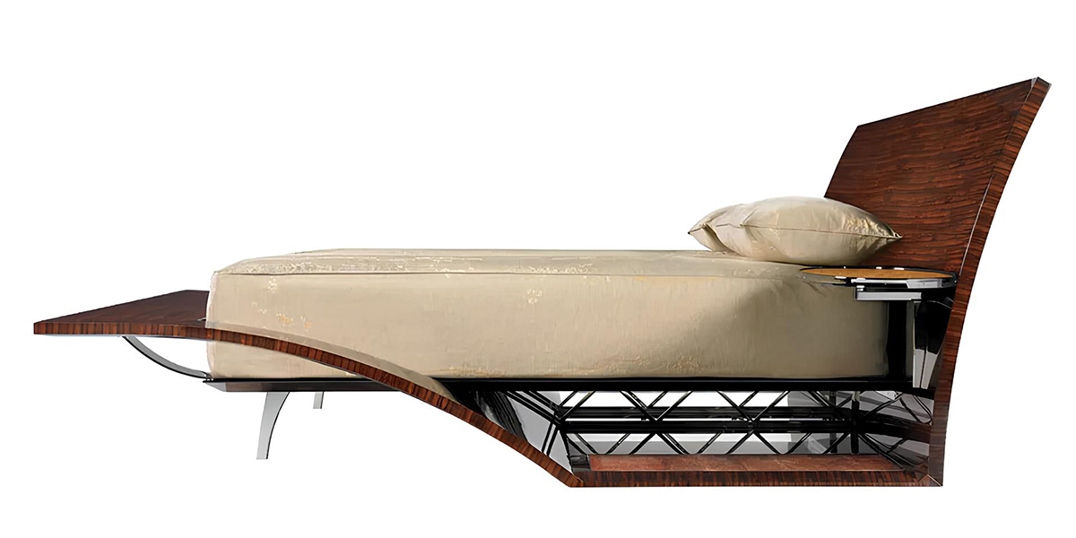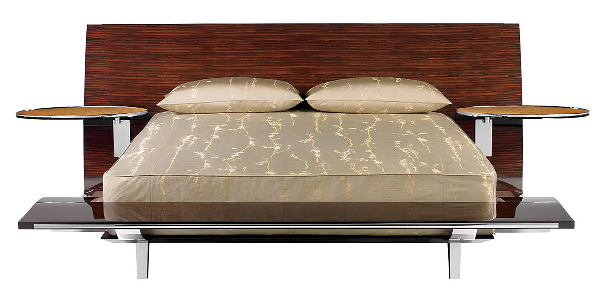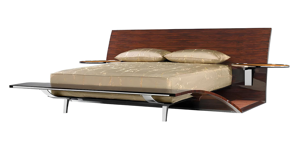 Кровать положила начало целой коллекции, которая включает: обеденный стол, коктейльный столик, несколько приставных столиков, клубные кресла и даже ванну на двоих из мрамора Statuario Venato.