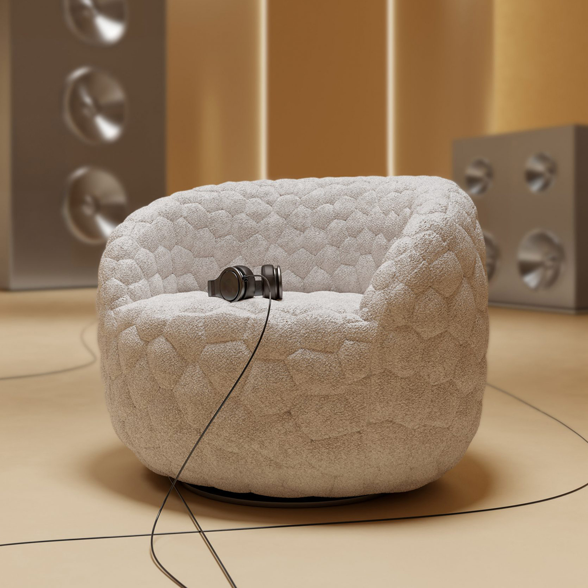 Первый дизайнерский объект Робби Уильямса предлагает противоядие от подавленности. Кресло Introvert — это «отчасти скульптура, отчасти эмоциональное силовое поле». Он обращается к всеобщему желанию уединиться, поразмышлять и немного посмеяться над жизнью. Предмет имеет слегка изогнутую форму, обит приятной на ощупь тканью с натуральной шерстью альпака и хлопком, которая простегана в 3D и натянута на мягкое сиденье, имитируя ощущение объятий. Дополнительные подушки разработаны так, чтобы пользователь мог «устроиться по-своему».