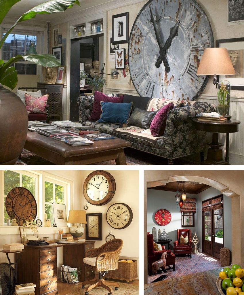 Несмотря на то, что часы являются неотъемлемой частью нашей жизни, их образ не так часто встречается в предметах интерьера и совершенно напрасно. Порой необычное решение вполне может стать не только самостоятельным элементом, но и главным акцентом оформления пространства.