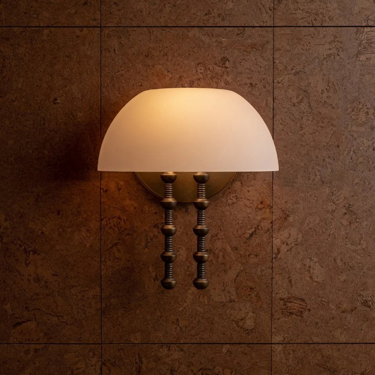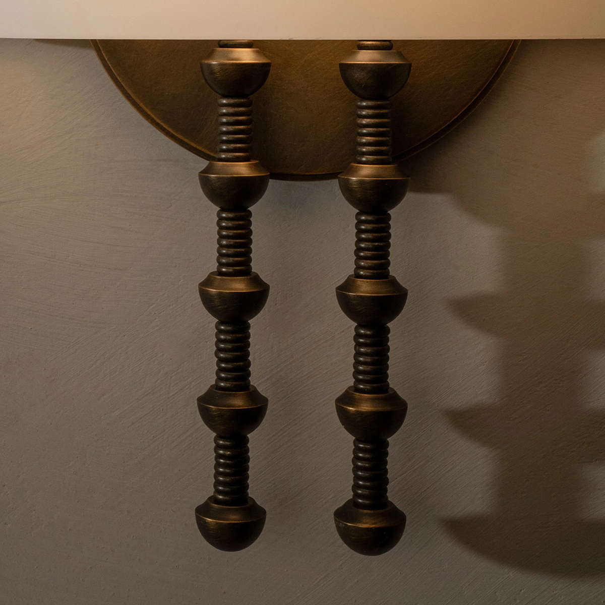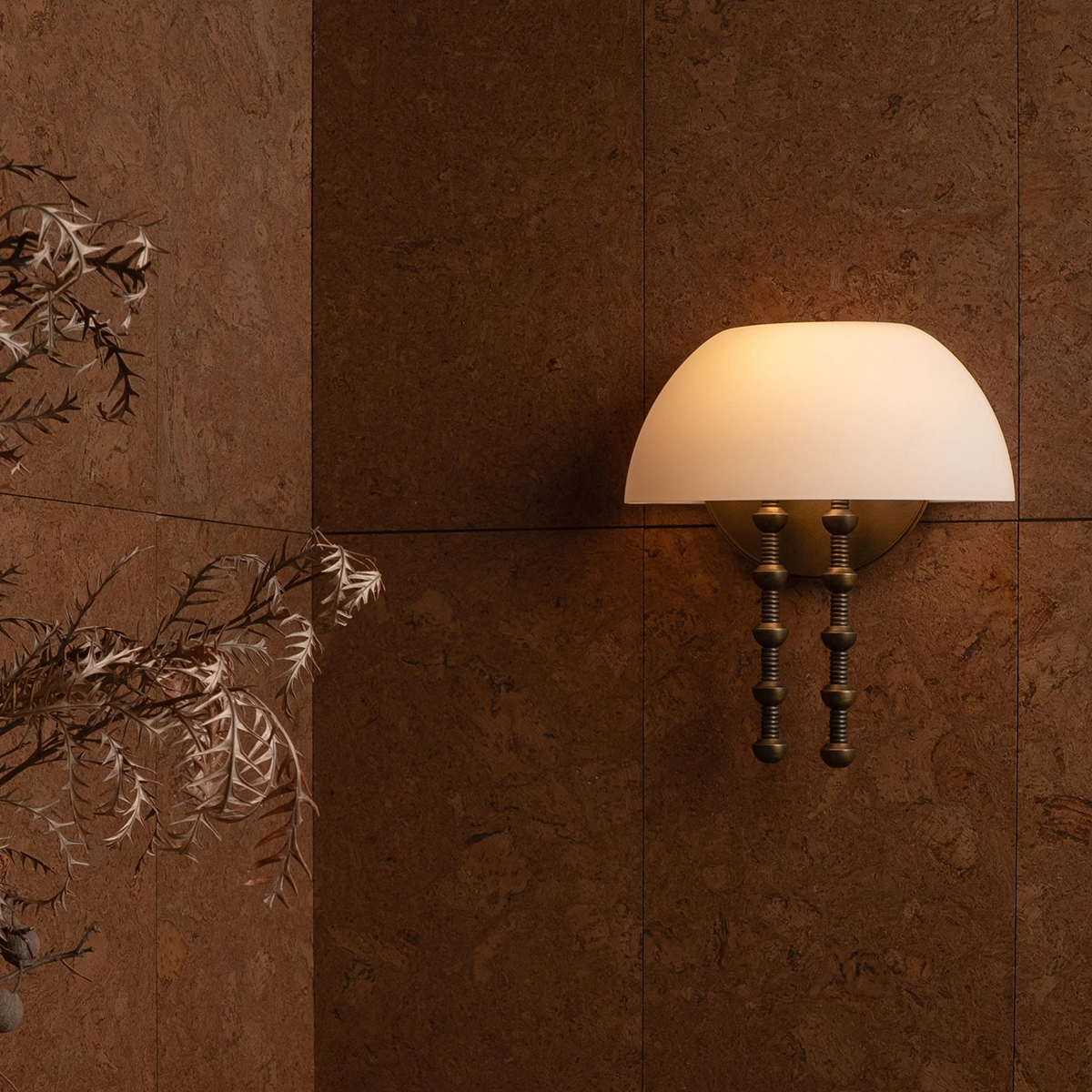 В светильнике Akner изысканный орнамент гармонично сочетается с продуманным ощущением визуальной массы. Центральным элементом служит ряд индивидуально отлитых цельных латунных бусин, которые создают ощущение тяготения, висящих под мягко светящимся плафоном из опалового стекла.БРА FRANKLIN