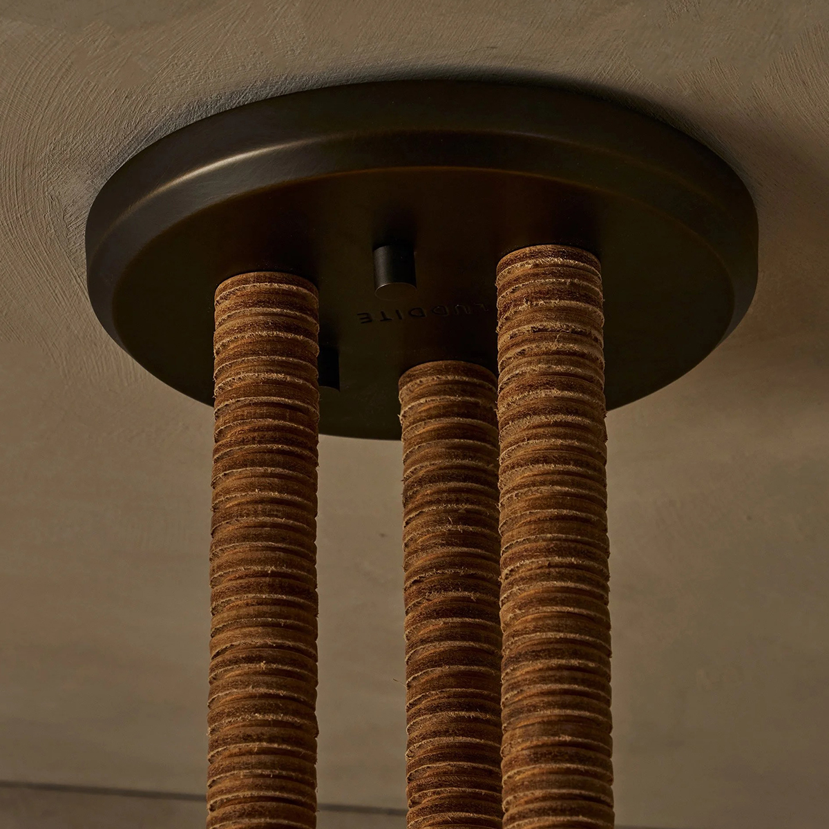 Светильник Folton воспевает несовершенство природных материалов, используя в качестве центральной детали многоярусные кожаные диски. Кожаные опоры полностью проходят сквозь матовый стеклянный плафон светильника и увенчаны латунными наконечниками.ПОДВЕСНОЙ СВЕТИЛЬНИК PELL